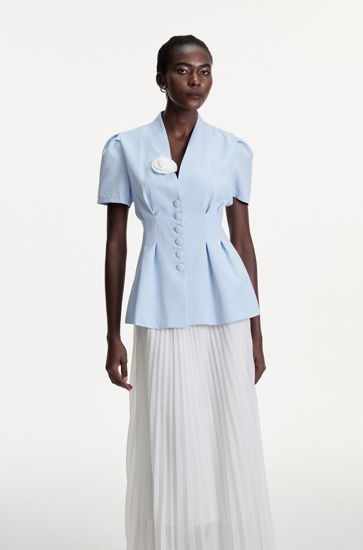• Blue Ruch Plunge Maxi Dress Elegant Design