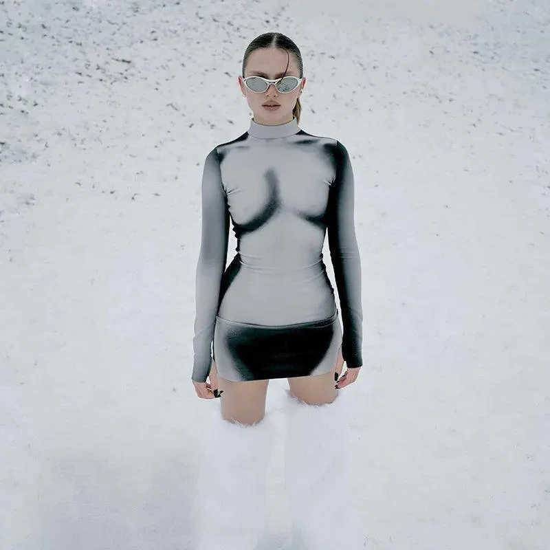 Elevate your wardrobe with this stunning 3D Printed Long Sleeve Bodycon Mini Dress in Black & White. This eye-catching dress features bold 3D printing that adds a unique flair to your ensemble. The long sleeves offer a touch of sophistication and warmth while maintaining style. Its flattering bodycon fit ensures a sleek silhouette that makes a statement at any event. Combining fashion with function, this modern dress is designed to stand out with its striking print. Explore endless style possibilities with this must-have piece . For more fashion inspiration, follow us on Instagram @mermaid_way.