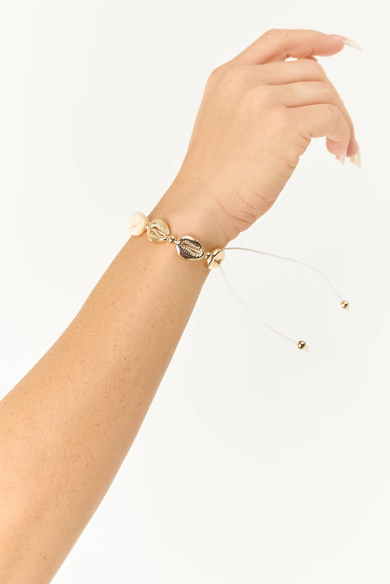 Embrace coastal vibes all year with our stunning Adjustable Gold Puka Shell Bracelet! Crafted with gold metallic puka shells and an adjustable pull string closure, this accessory adds sunshine to your wrist. The contrast ivory puka shell enhances its beauty and style. Enjoy the adjustable circumference and easy wear. Imported for quality and uniqueness.