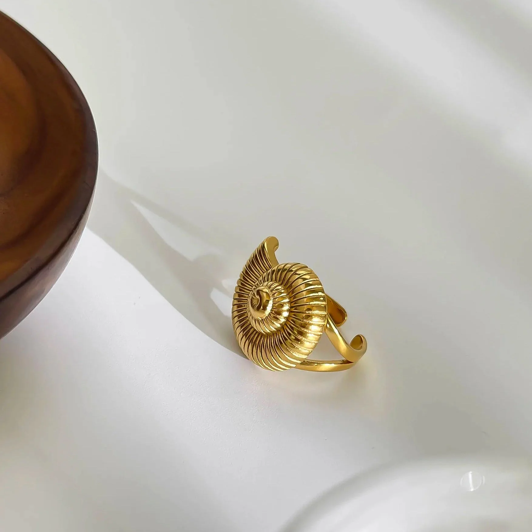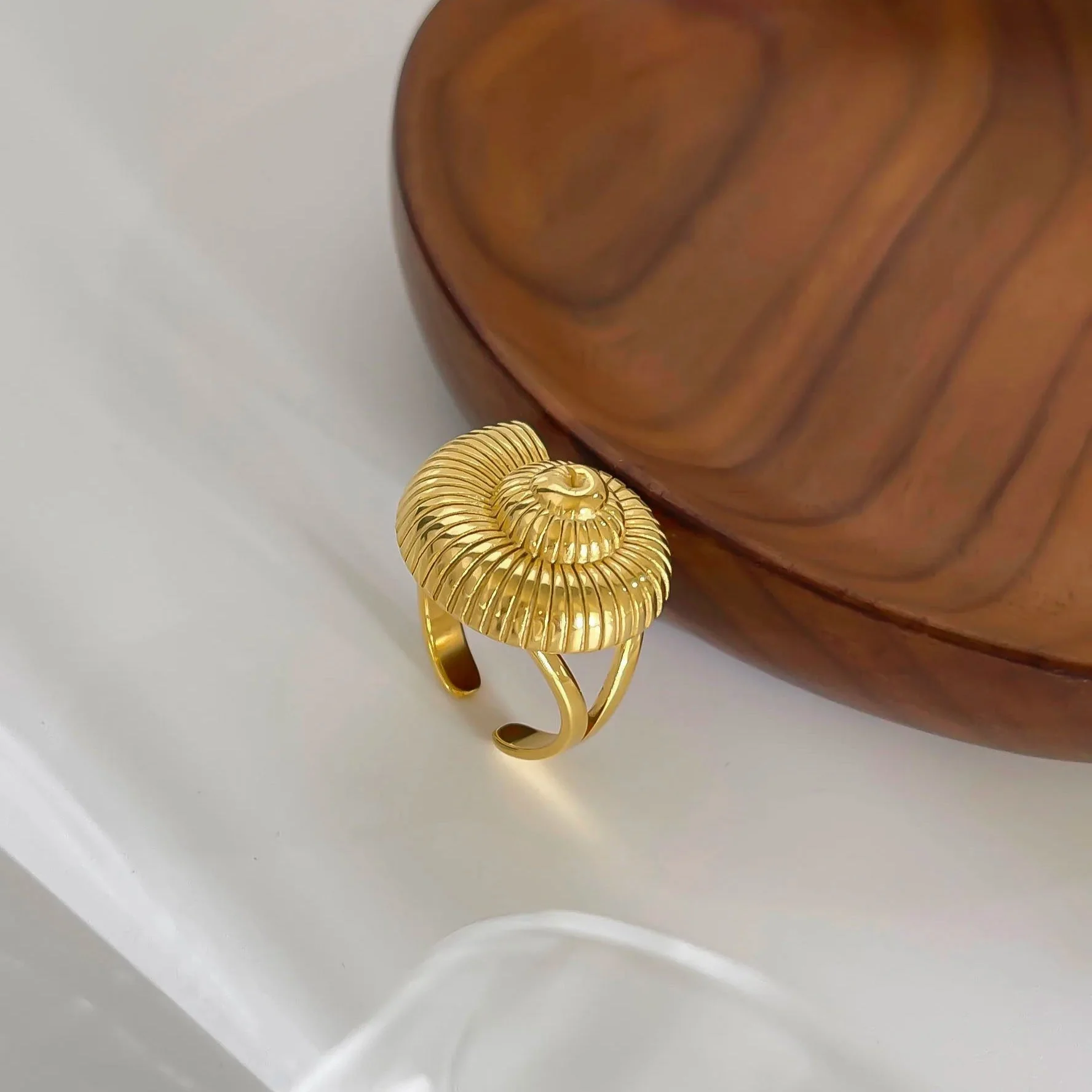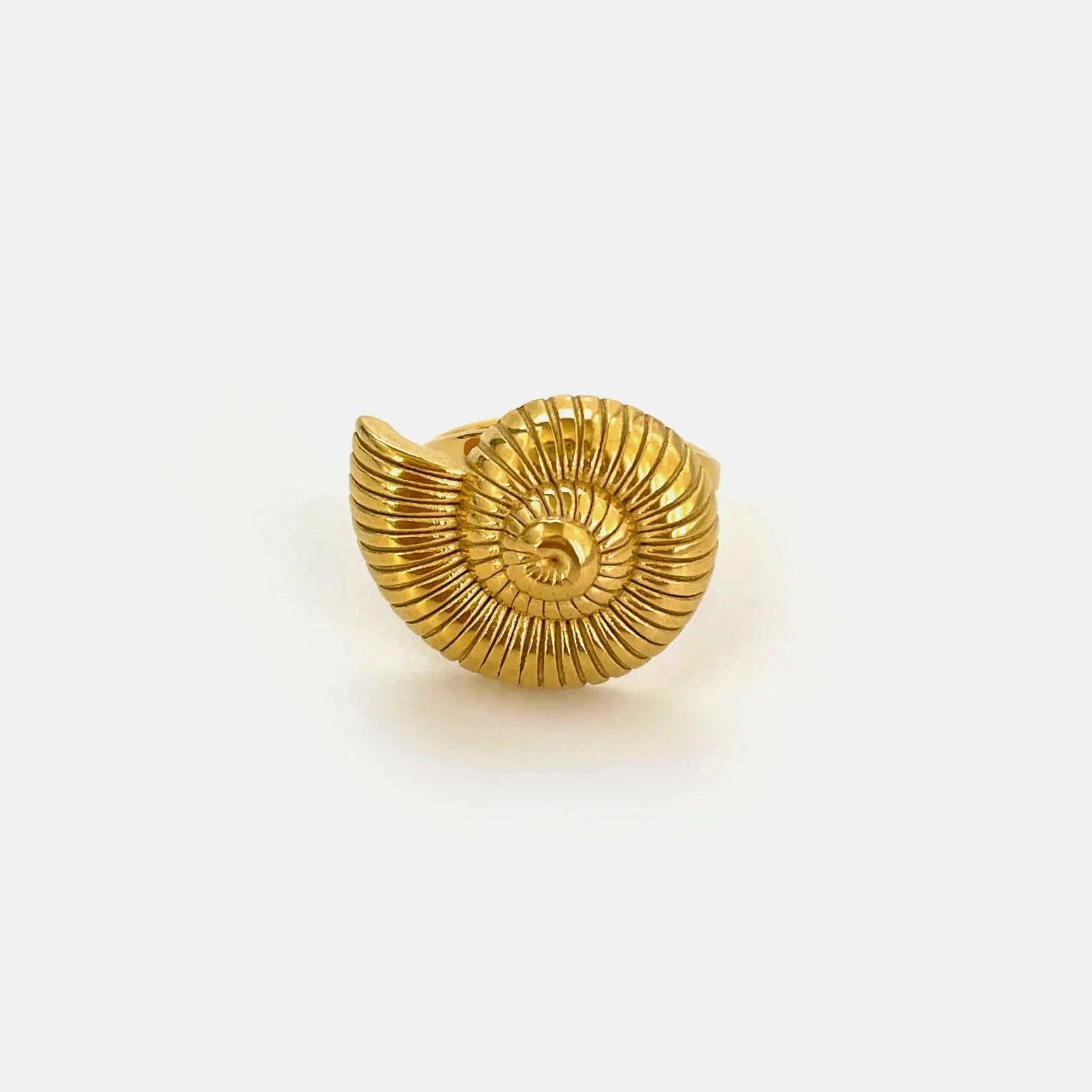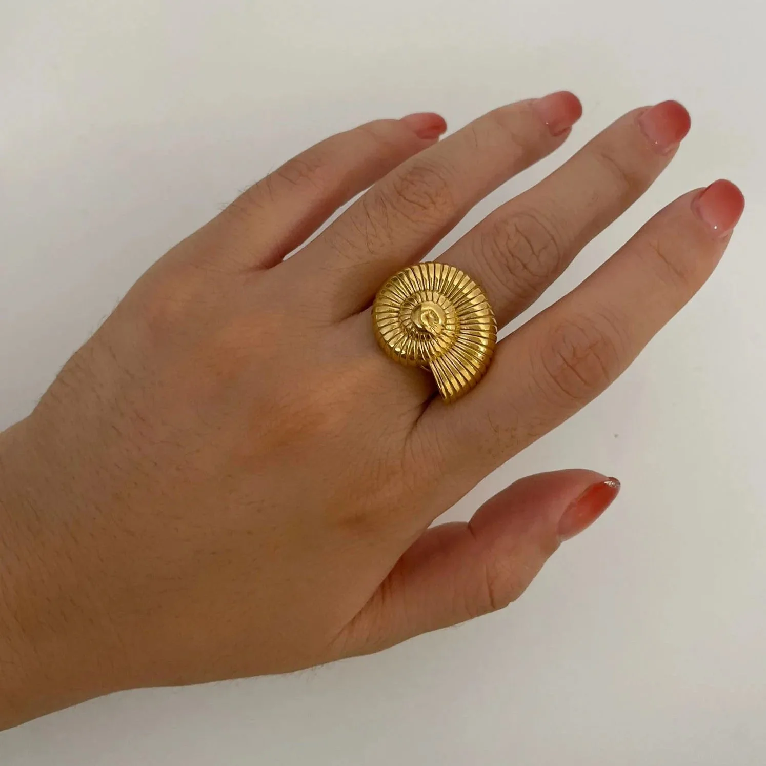 Indulge in the elegance and versatility of our Ocean Charm Conch Shell Gold Tone Ring, designed for everyday wear with a stackable feature for a personalized touch. This exquisite piece effortlessly complements both understated and statement looks, crafted from durable stainless steel with a lustrous 18k gold tone finish that promises long-lasting allure. Discover endless styling possibilities – wear solo for a touch of sophistication or layer with bracelets and necklaces for a striking ensemble. Treat yourself or a loved one to these timeless and hypoallergenic rings, resistant to water and sweat, and measuring L – 2 cm / 0.79 inch, W – 2.3 cm / 0.91 inch. Enhance your style with more inspiration on Instagram @mermaidway.