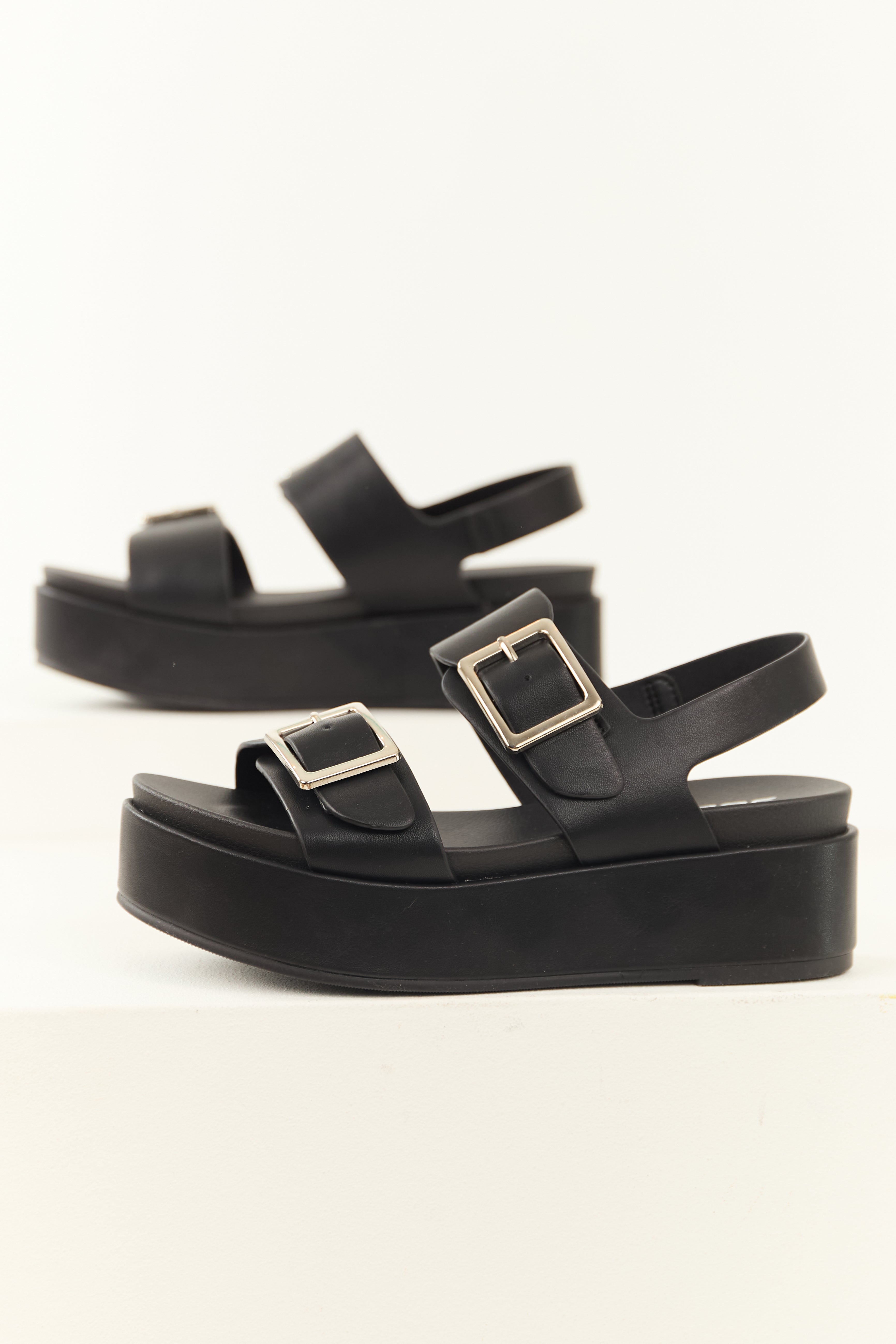 Crafted from luxurious non-stretchy faux leather, these platform sandals feature an adjustable silver metallic buckle on the toe, ankle, and heel straps for a stylish look. With a rounded toe, a 2″ platform for added height, and a 10″ circumference, these imported sandals blend fashion and comfort seamlessly. Explore your style with this versatile footwear option .