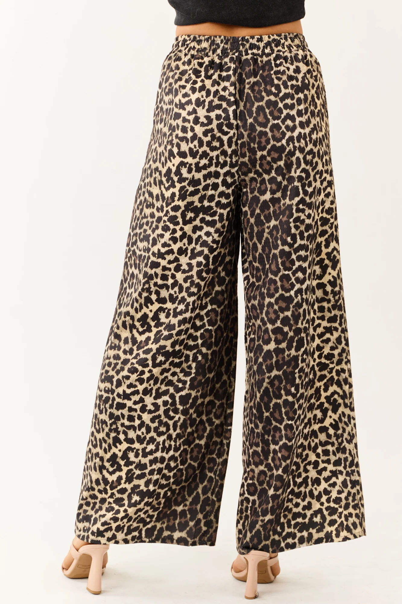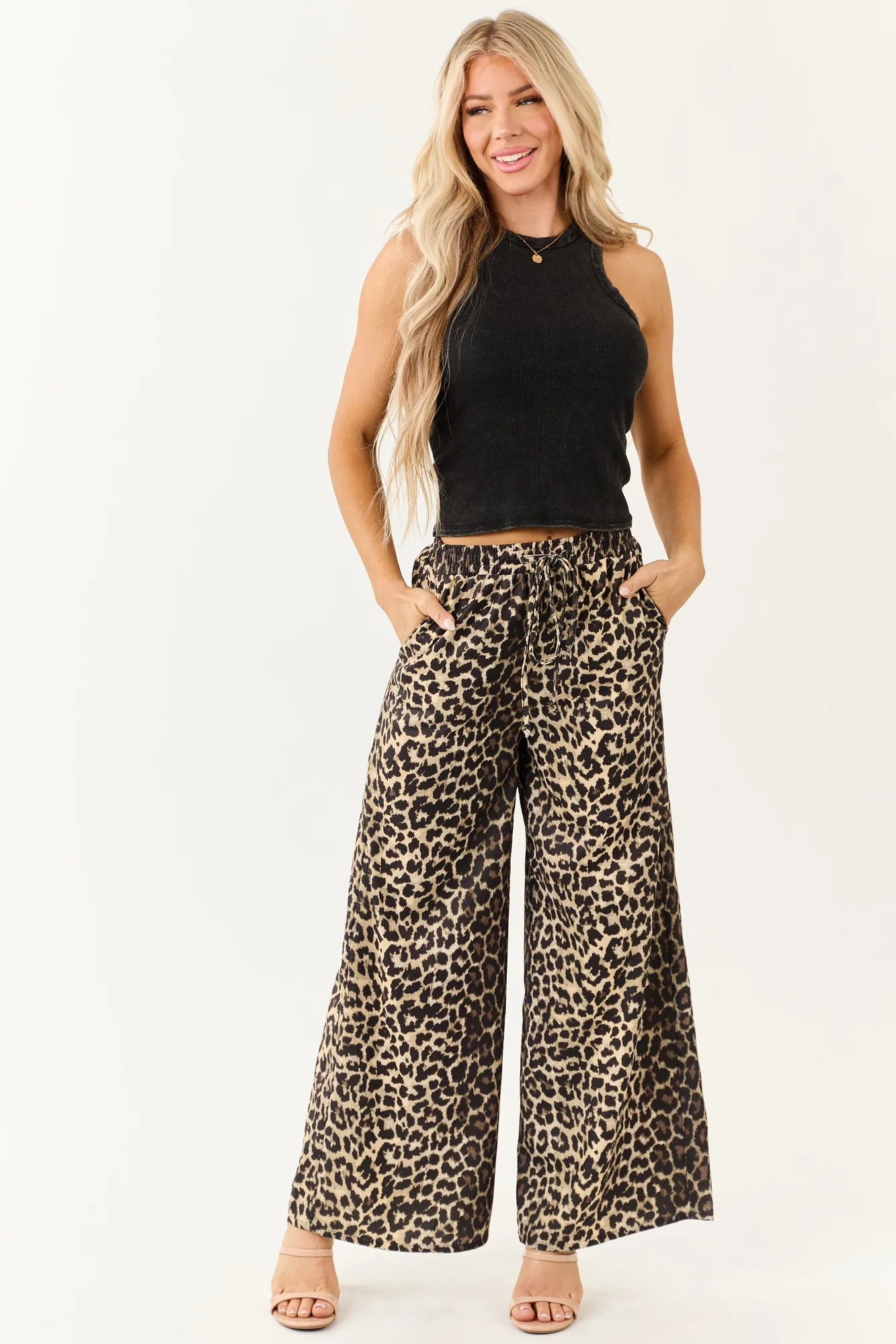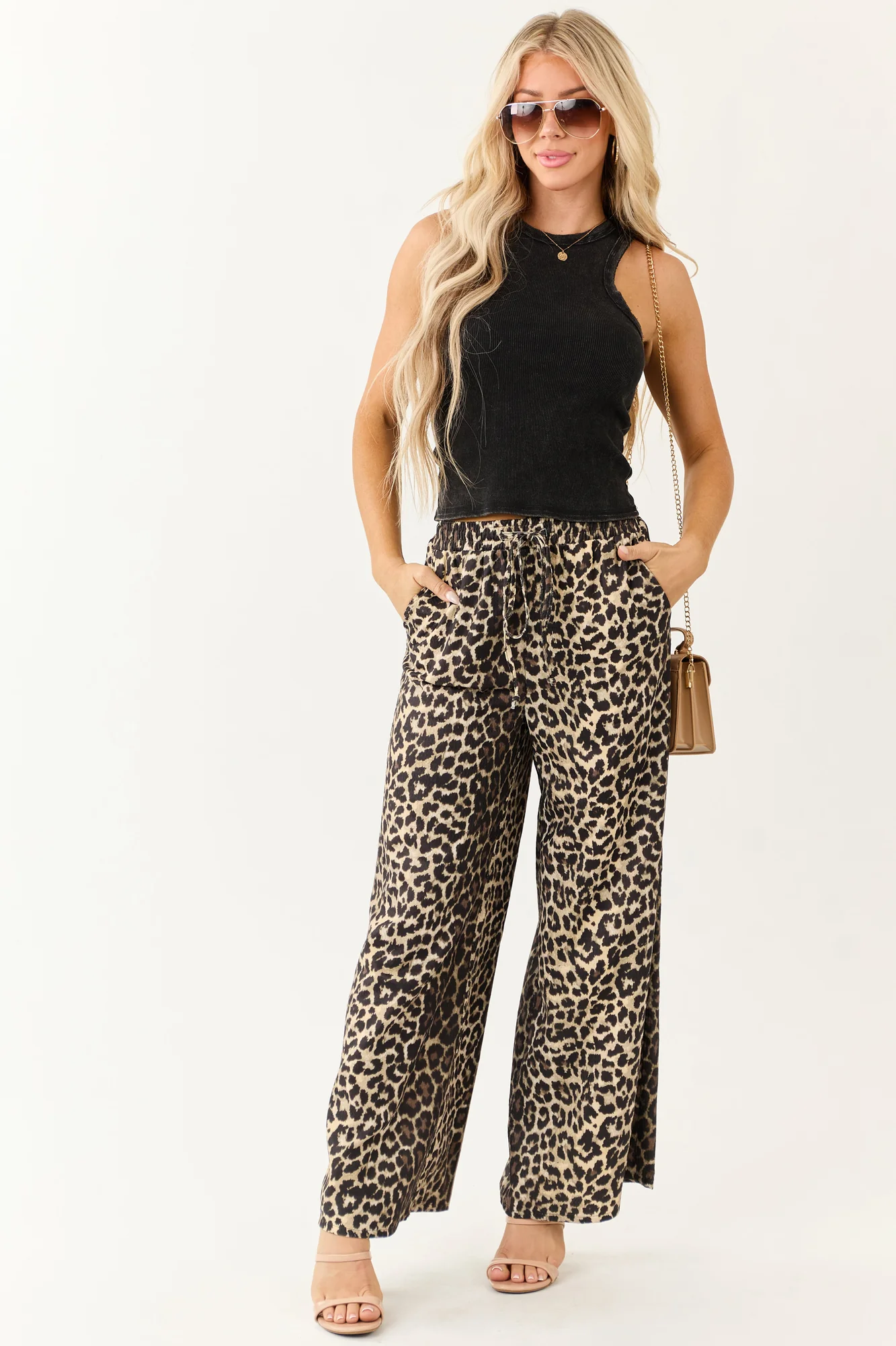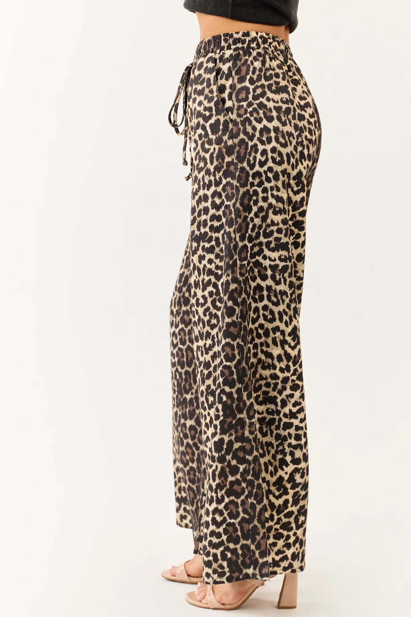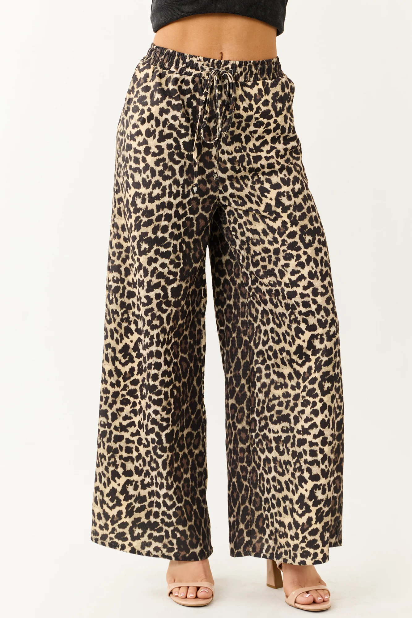 These stylish high waisted wide leg pants in cream with an animal print design are perfect for creating trendy outfits. Made of 100% polyester, these pants feature a smocked waistband, adjustable drawstring, and 2 pockets. The leopard print comes in shades of black, oatmeal, and coffee, adding a wild touch to your wardrobe. The inseam measures 28 inches, making them ideal for various occasions. Pair with fitted tops for a flattering look that is both chic and comfortable. This garment fits true to size with measurements provided in the size chart.