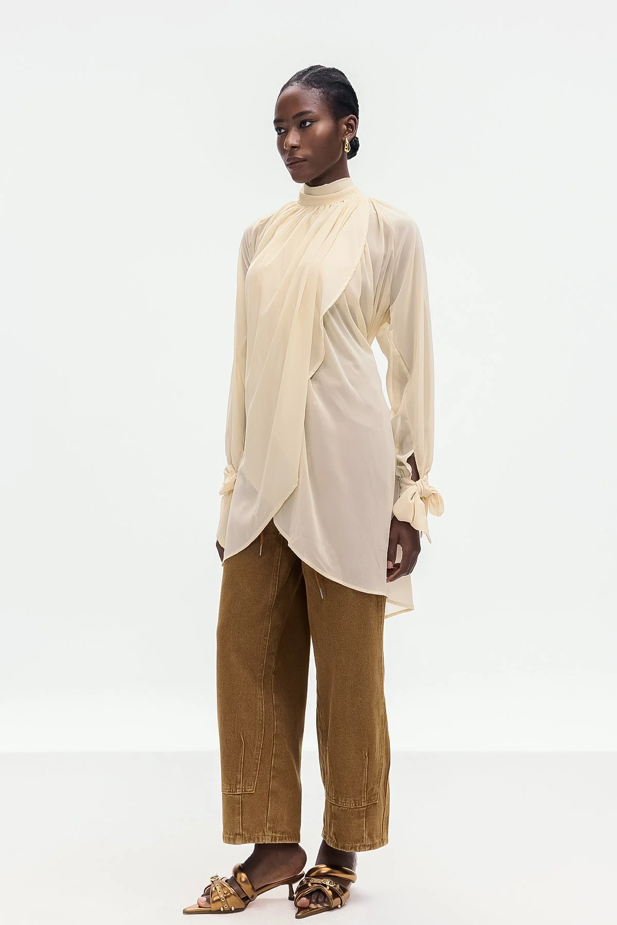 Elevate your wardrobe with the striking Apricot Asymmetric Lace-Up Shirt . This chic essential redefines modern sophistication with its unique asymmetrical cut and delicate lace-up details. The soft apricot color exudes warmth, perfect for any occasion, whether professional or casual. Experience the perfect blend of craftsmanship and style in this versatile piece designed for those with an eye for elegance and refinement. Slight stretch for comfort. Care Instructions: Machine wash cold. Colors may vary slightly due to photography lighting.