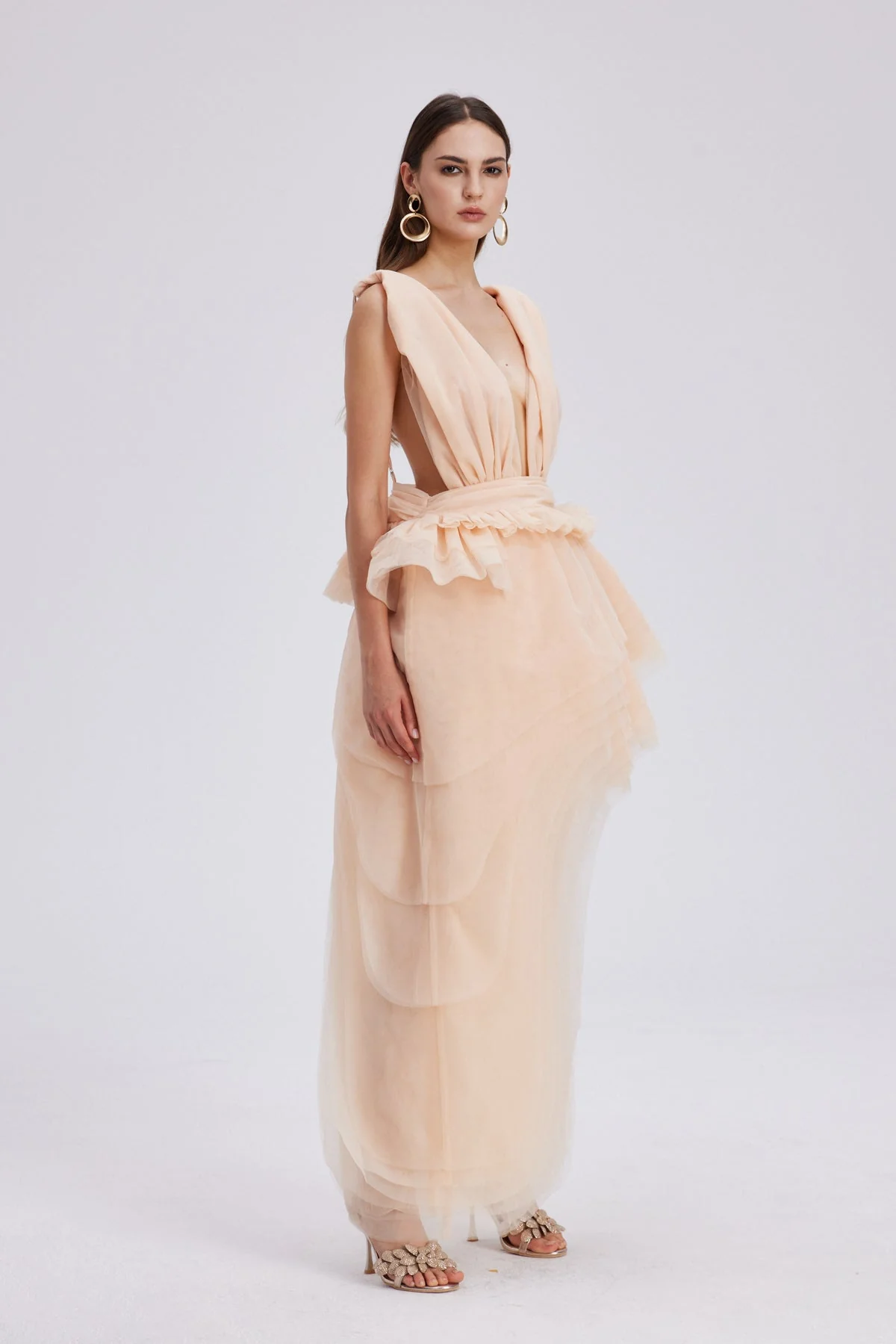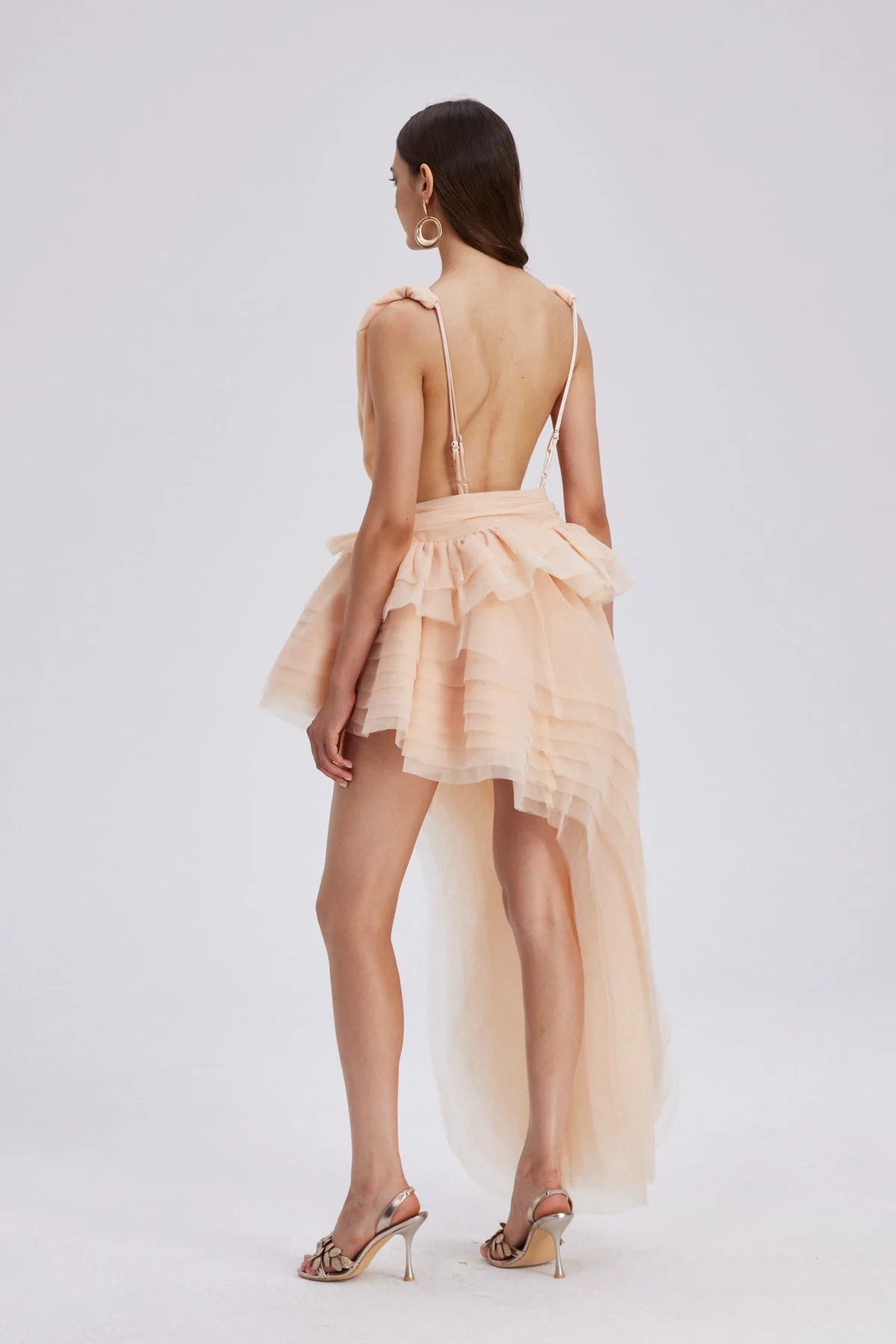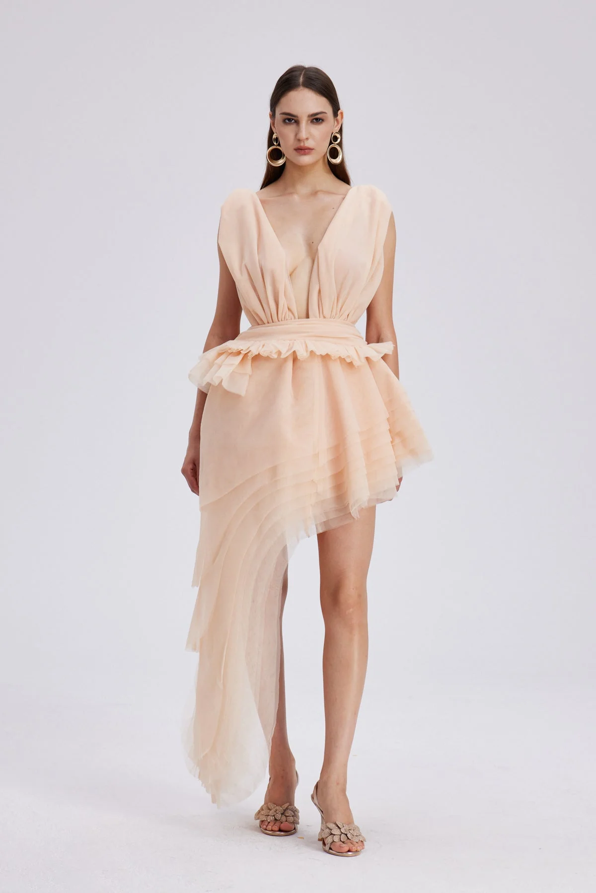 The Apricot Mesh Asymmetric Mini Dress exudes sophistication with delicate mesh fabric and expertly crafted ruching that enhances the silhouette. Its modern asymmetric design adds a contemporary edge, ideal for stylish occasions. The warm apricot hue complements various skin tones for a refined and elegant look, perfect for those seeking a blend of modern design and subtle femininity. This dress offers a non-stretch fit, is easy to clean with gentle machine wash, and may exhibit slight color variation due to lighting in images, ensuring a unique touch to your wardrobe.