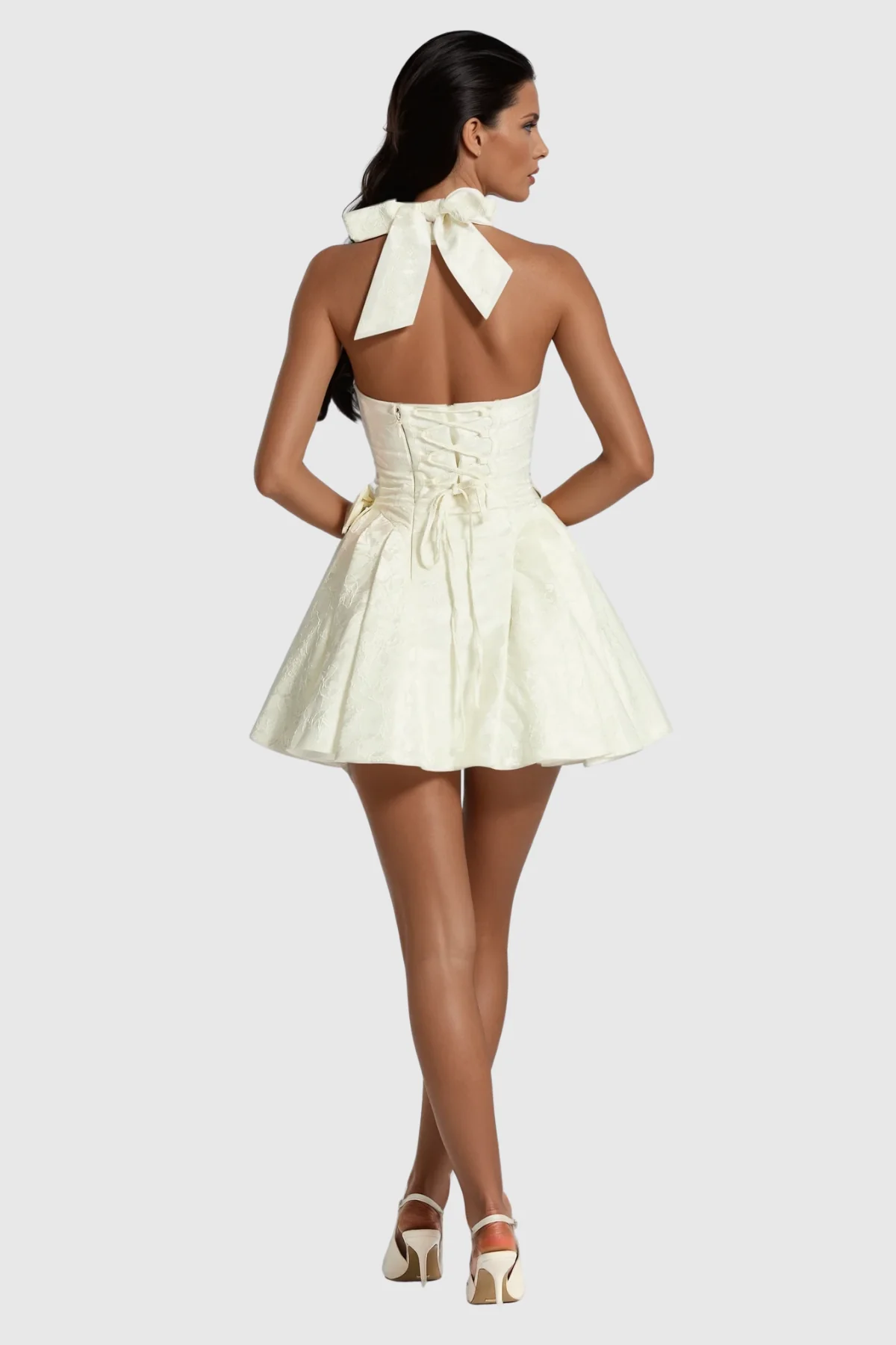 Elevate your style with the Apricot Plunge Ruffle Mini Dress featuring a stunning bow detail and feminine ruffle accents. This sophisticated dress boasts a deep plunge neckline for a touch of allure. The apricot color exudes warmth and flattery, perfect for any occasion. Expertly crafted for a balance of style and comfort, this dress is a must-have for a refined yet youthful look. Experience the perfect blend of playfulness and elegance in this chic piece. Please note that the color may vary slightly due to lighting during photography. Stretch Factor: Non-Stretch. Care: Gentle machine wash.