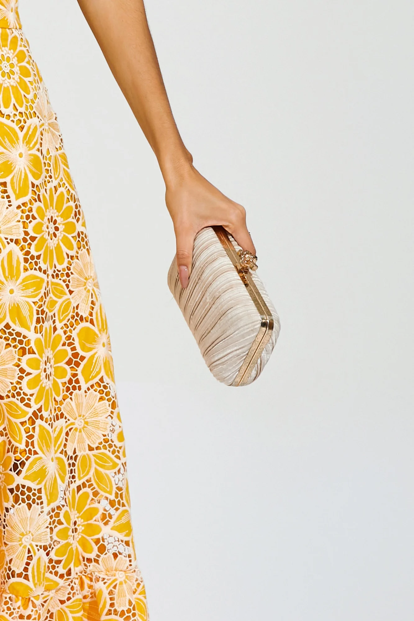Elevate your evening look with the Apricot Satin Evening Clutch Bag from Night Novas. Made of pleated satin, this versatile bag is a perfect accessory for evening gowns and cheongsams. With dimensions of 17.5cm x 6cm x 10cm, it offers both shoulder and crossbody carrying options. Experience sophistication and grace in every detail.