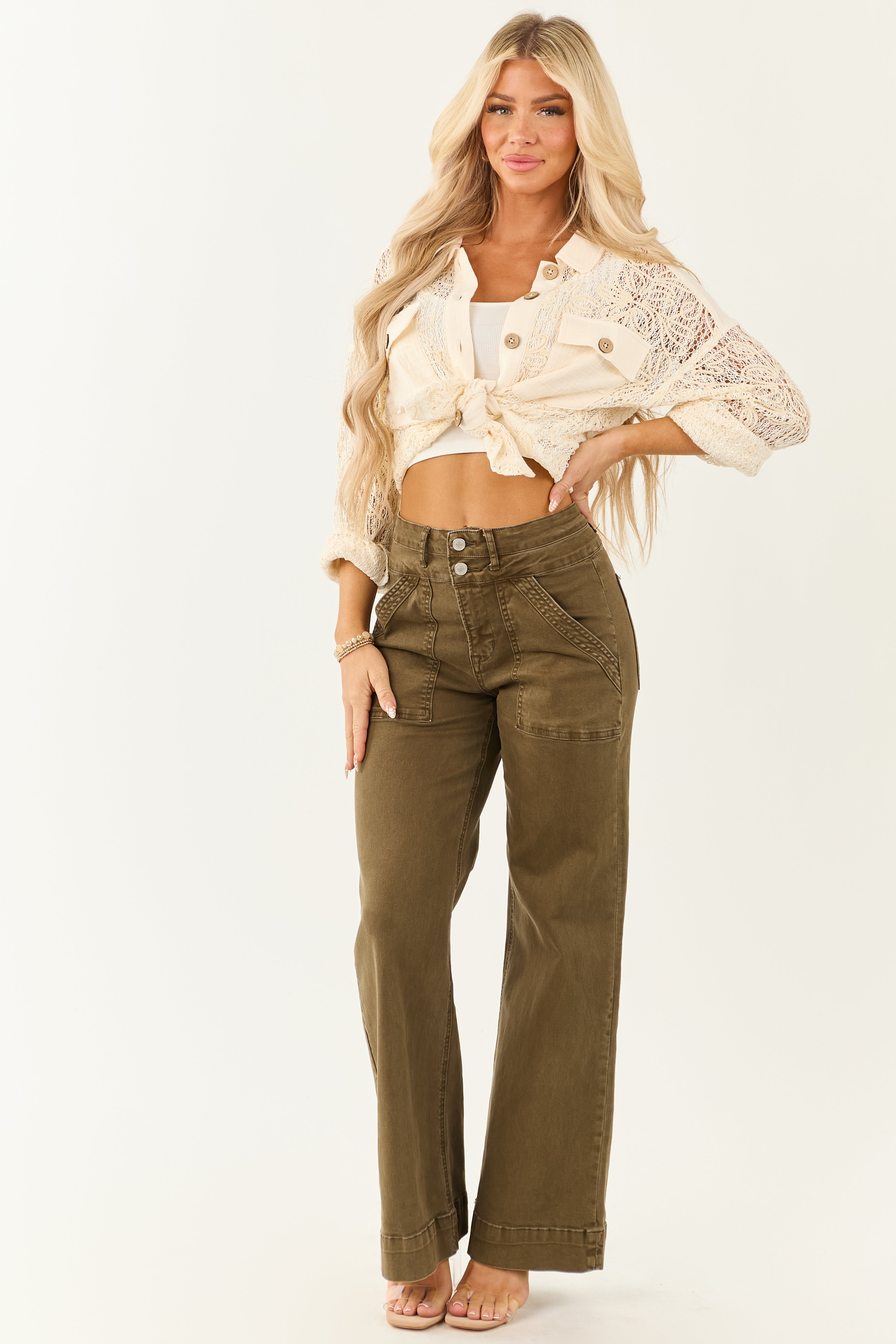 Experience the perfect blend of style and comfort with our Army Green Wide Leg Stretchy Jeans. These high-rise jeans feature a forgiving waistband, stretchy denim fabric, and a classic design with 4 pockets. Ideal for all-day wear, these jeans offer a chic and relaxed fit that stays true to size. The inseam measures 30.5 inches for a versatile length. Crafted from 98% Cotton and 2% Spandex. Elevate your look effortlessly with these trendy and comfy jeans! Available in sizes 24 to 32.