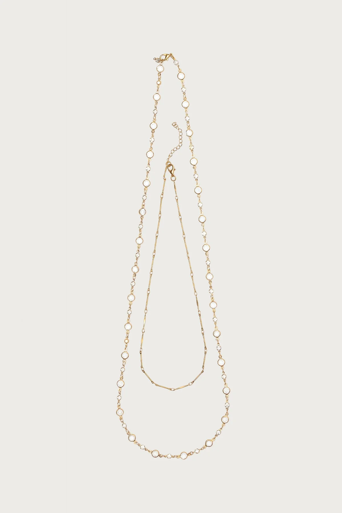 Elevate your style with our sophisticated Assorted Chain Faux Crystal Necklace Set made of exquisite faux crystals and gold tone metal. Featuring an assortment of chains for a versatile look. Measurements: Length 16.5 – 31 inches. Care Instructions: Avoid direct contact with perfume, soap, or creams to maintain its stunning luster and shine.