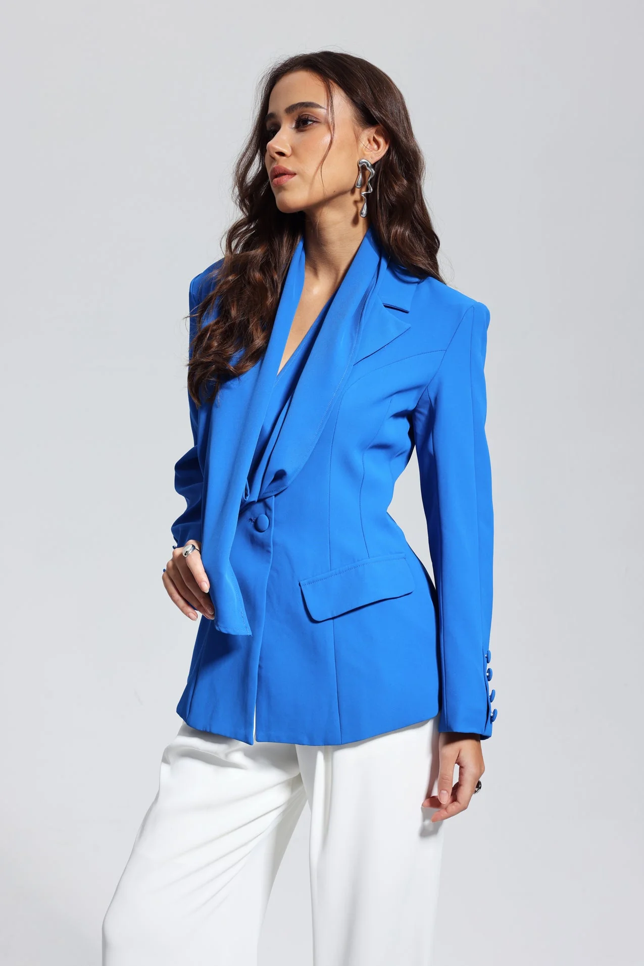 Add flair to your wardrobe with the Asymmetric Blue Blazer. This chic essential boasts a unique deconstructed design and sophisticated asymmetric cut, embodying confidence. Crafted from high-quality 100% Polyester, this blazer delivers both style and comfort. Elevate any occasion with this versatile piece that offers a non-stretch fit. Embrace the rebel office look with this elegant outfit. *Material: 100% Polyester *Stretch Factor: Non-Stretch *Care: Gentle machine wash. Please note, the color may vary slightly due to lighting when captured in images.