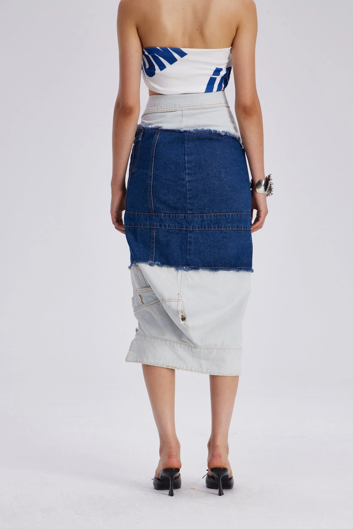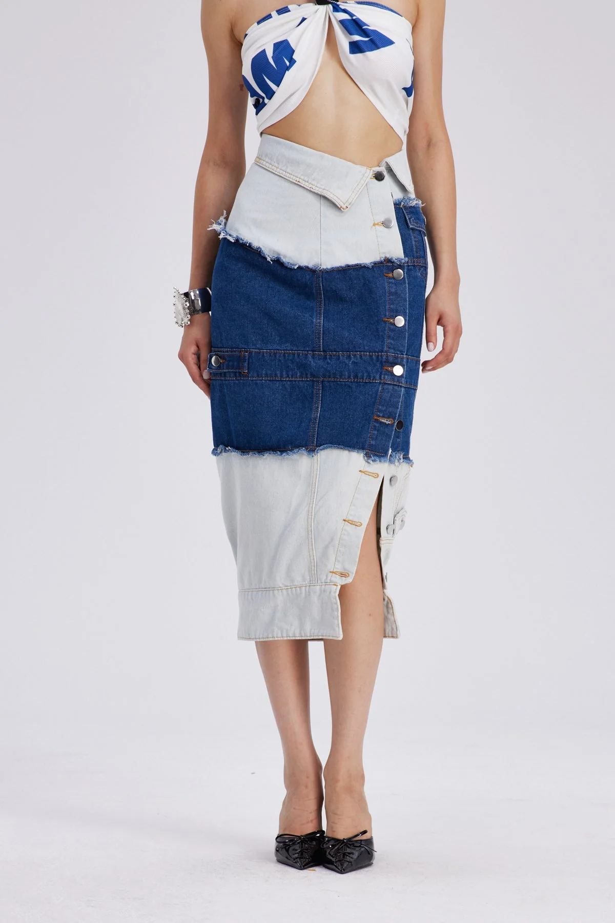Experience avant-garde style with the Asymmetric Blue Denim Maxi Skirt. Crafted for bold individuals, this skirt offers dynamic movement and visual intrigue with its architectural silhouette. The versatile maxi length combines contemporary edge with standout craftsmanship and innovative design. Perfect for fashion-forward wardrobes, it exudes sophistication and urban charm. Color may vary due to lighting. Non-stretch material. Gentle machine wash recommended.