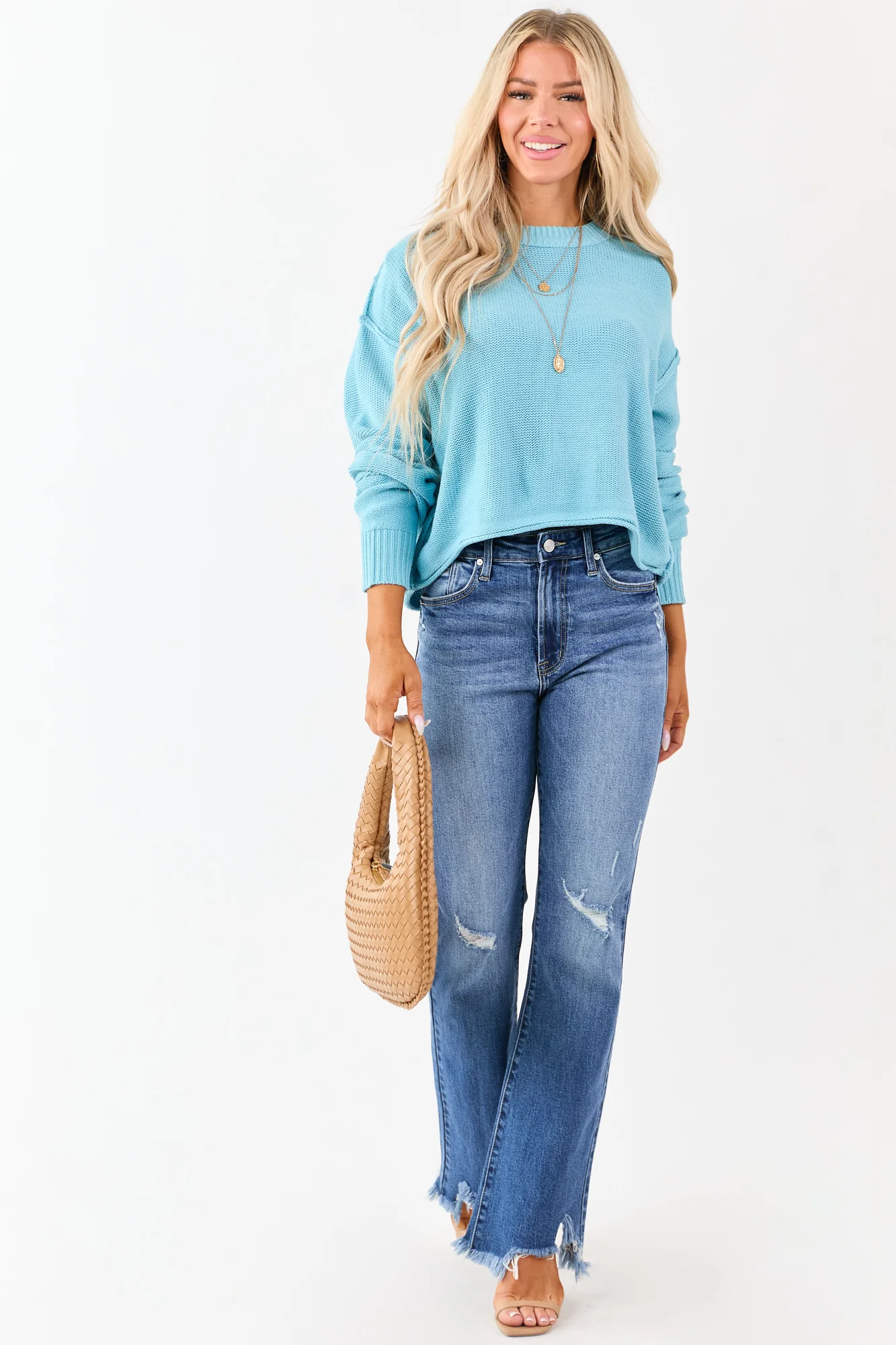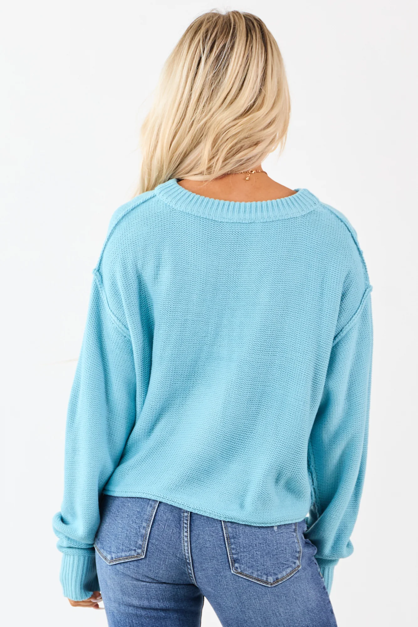 Indulge in the soothing comfort of our Baby Blue Knit Sweater. Crafted from 100% Acrylic, this sweater features a bright and relaxed design. With an oversized, wide boxy fit and a semi-cropped length, it offers a stylish yet comfortable look. The stretchy knit and drop shoulder add to its cozy appeal. Available in sizes S, M, and L, this sweater is perfect for chilly days. Elevate your style with this must-have piece!