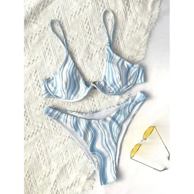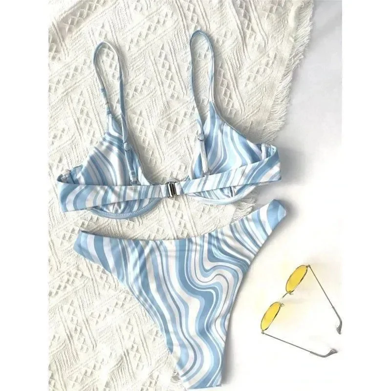 Make waves this summer with the Baby Blue Wave Print Underwire Bikini. This bikini features a vibrant wave print and underwire support for a flattering fit. The adjustable straps offer personalized comfort, ensuring you look and feel amazing. Crafted from high-quality polyester and Lycra, this bikini provides durability and a perfect fit for all-day wear. Whether youre lounging by the pool or hitting the waves, this bikini offers both style and functionality in one chic design. Turn heads with confidence and style in this must-have print underwire bikini! For more style inspiration, visit our Instagram @mermaid_way.
