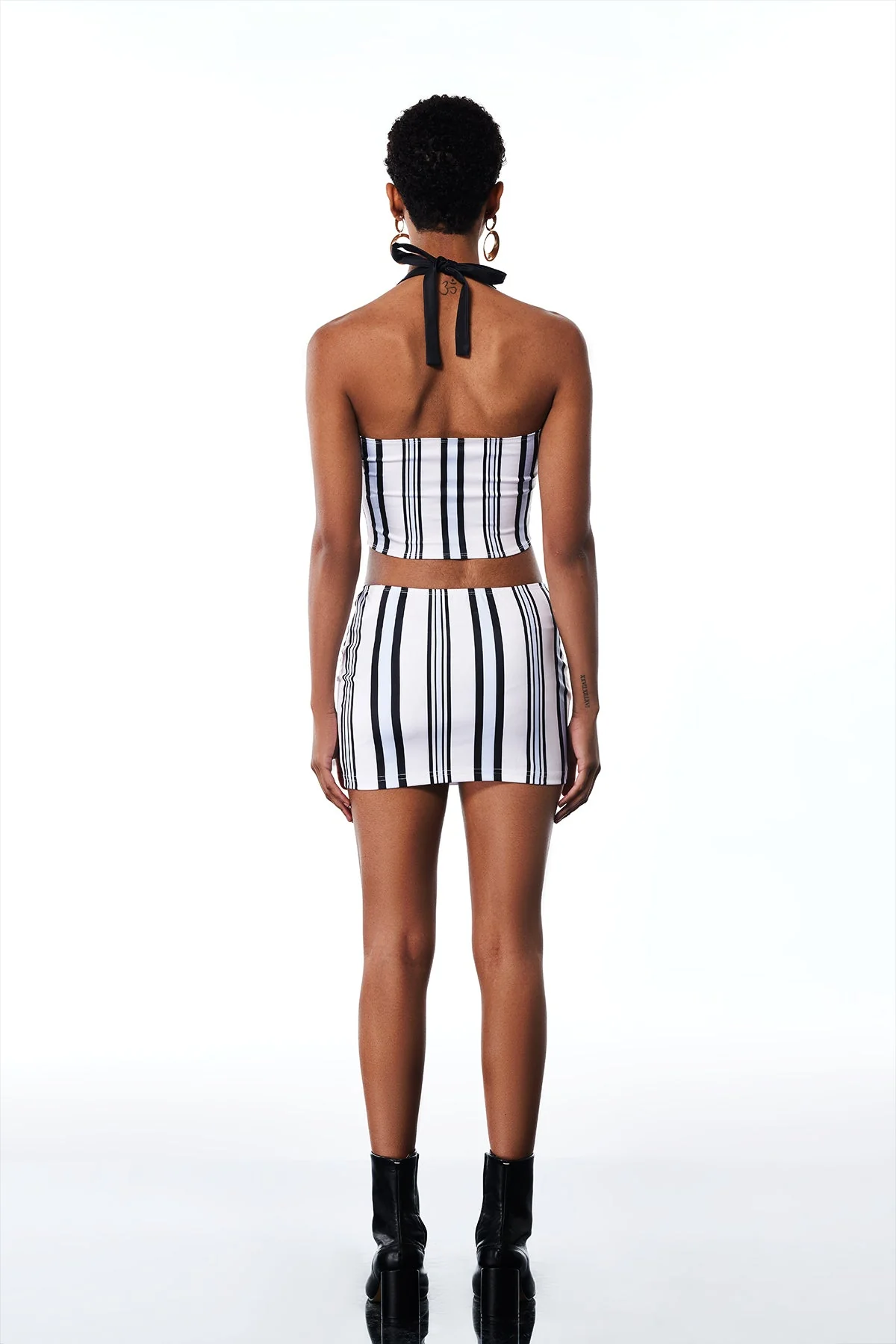 Elevate your style with our Backless Halter Neck Stripe Skirt Set. This set features a chic halter neck design and a striped skirt that exudes elegance. Made from a blend of 50% Polyester and 50% Cotton with a slight stretch, this set offers both comfort and style. Perfect for any occasion, this set is a must-have addition to your wardrobe. Experience the perfect balance of fashion and comfort with this versatile outfit. Color shades may vary slightly due to image lighting. Gentle machine wash recommended.