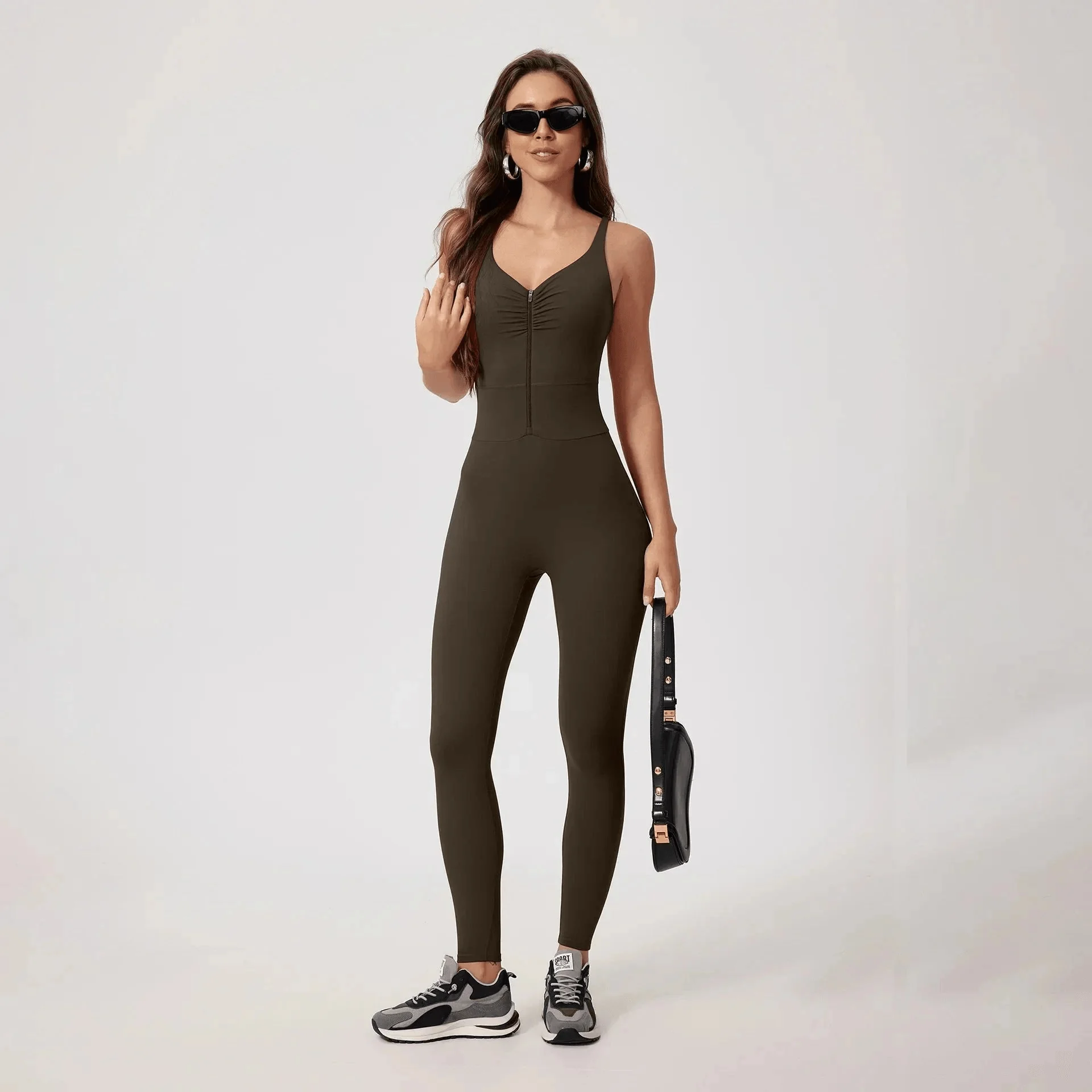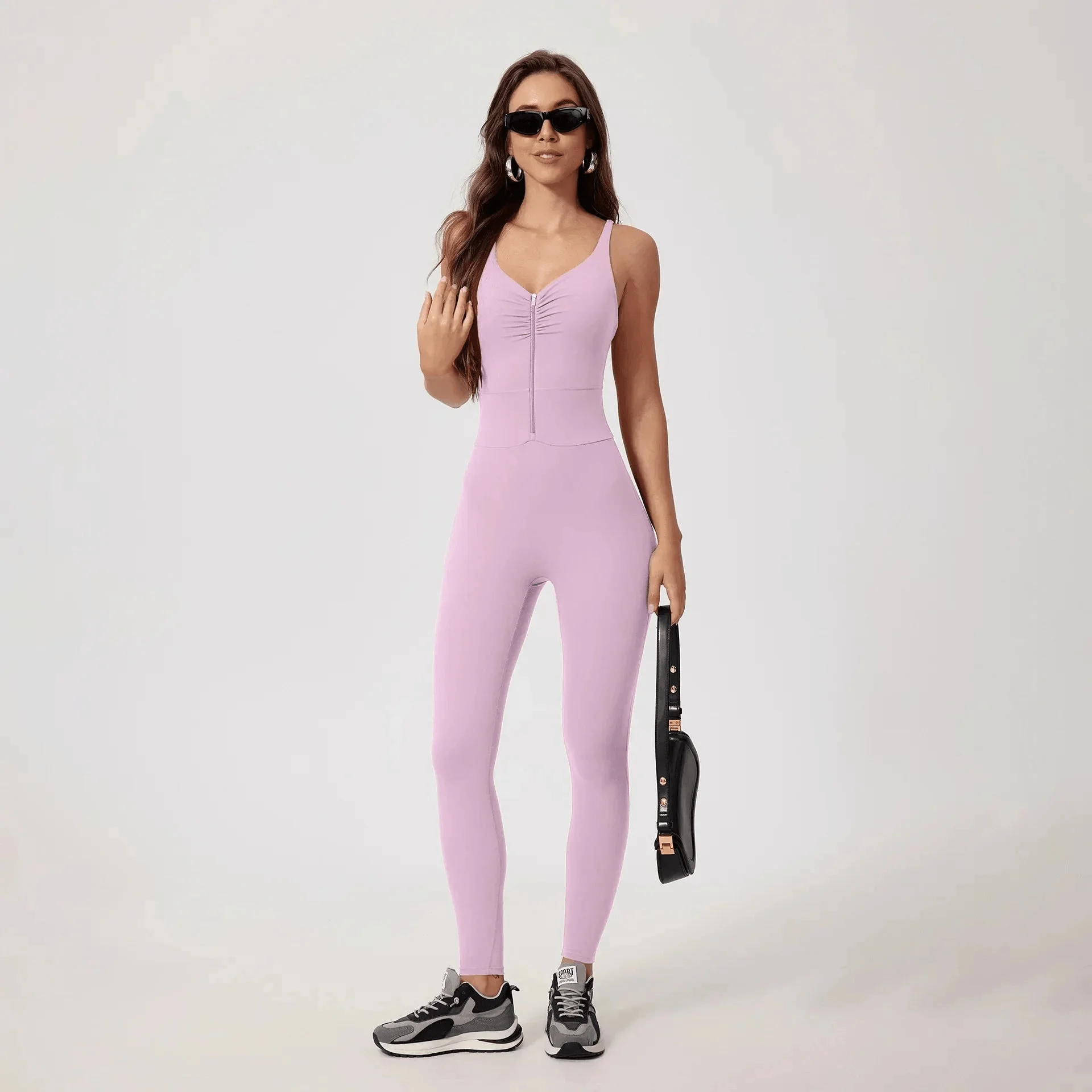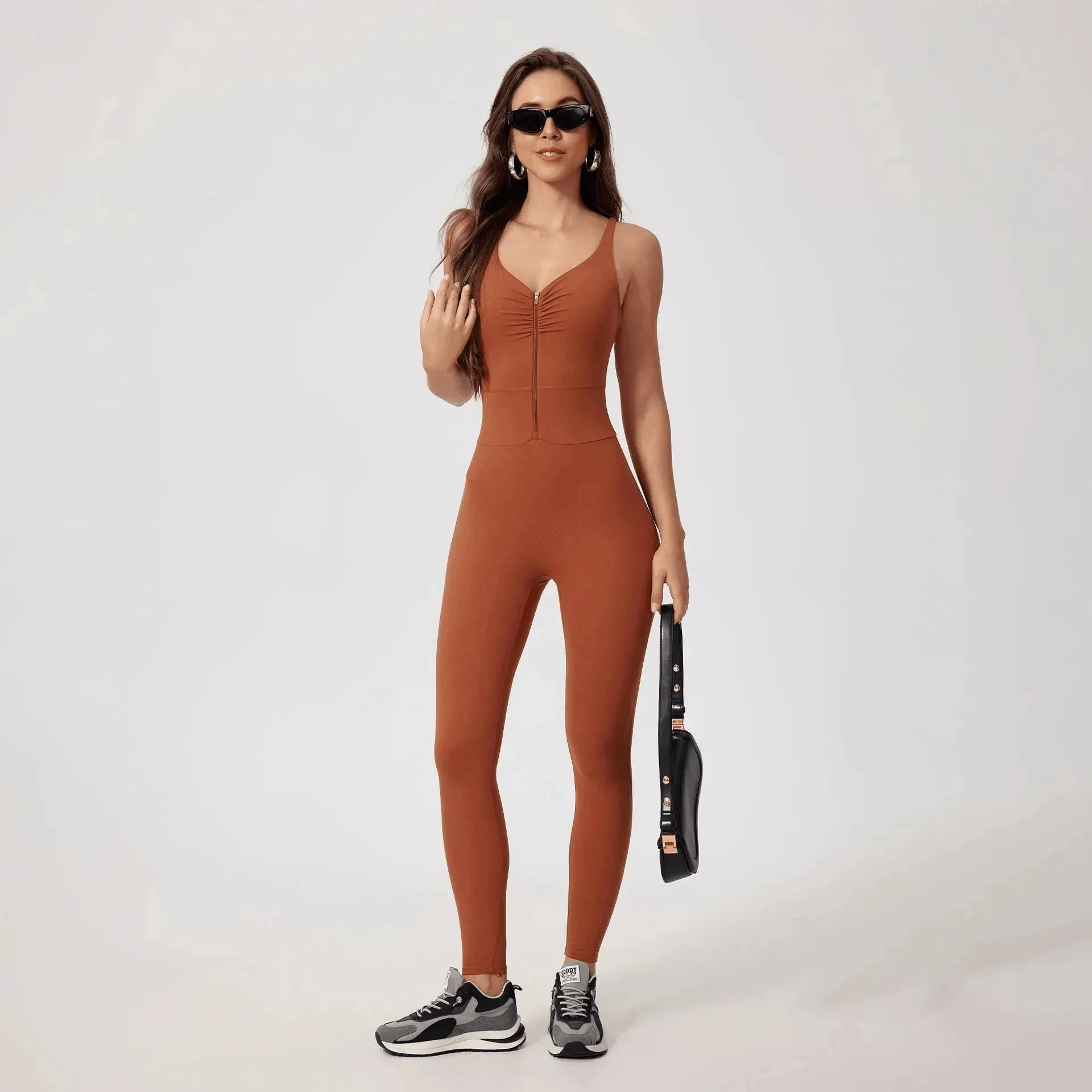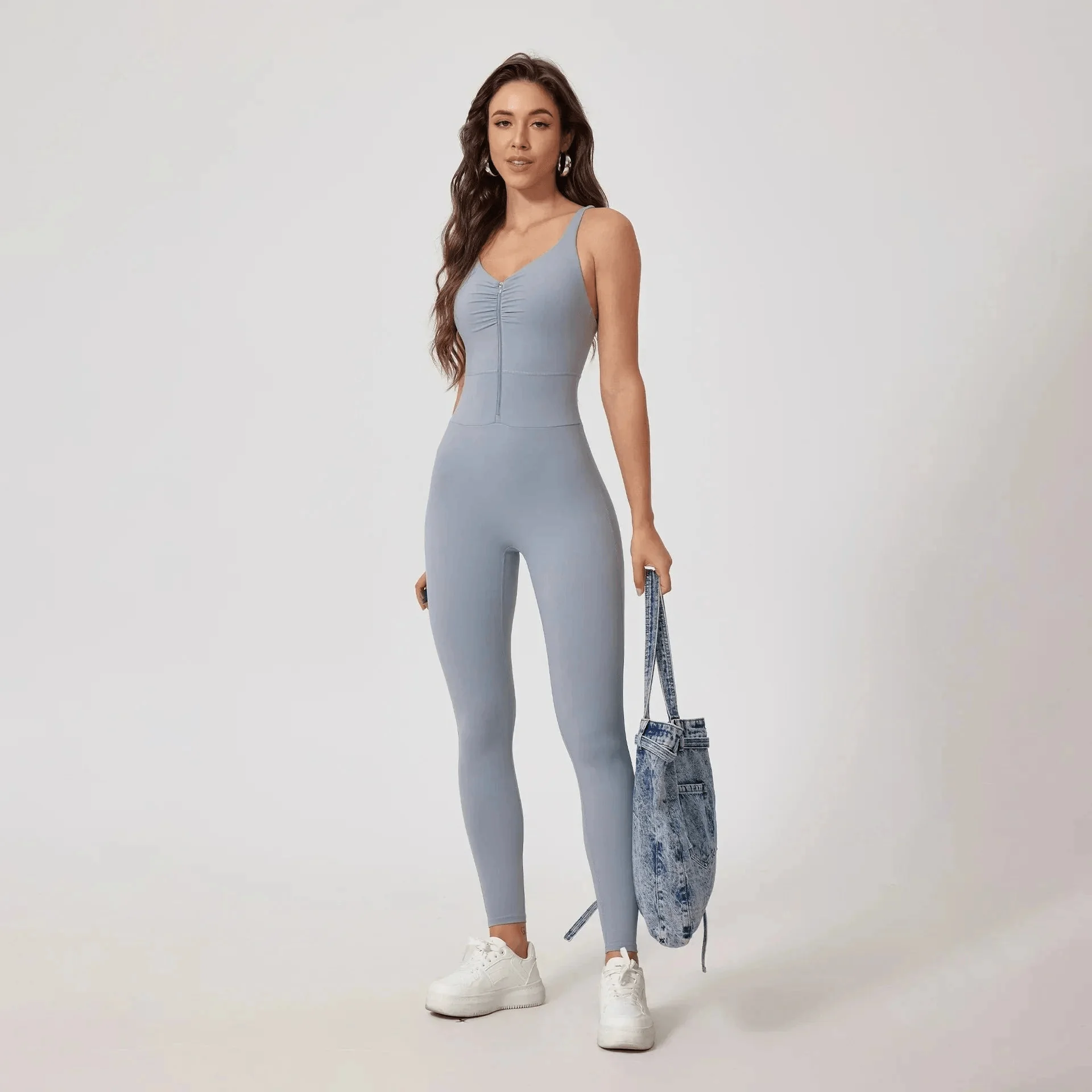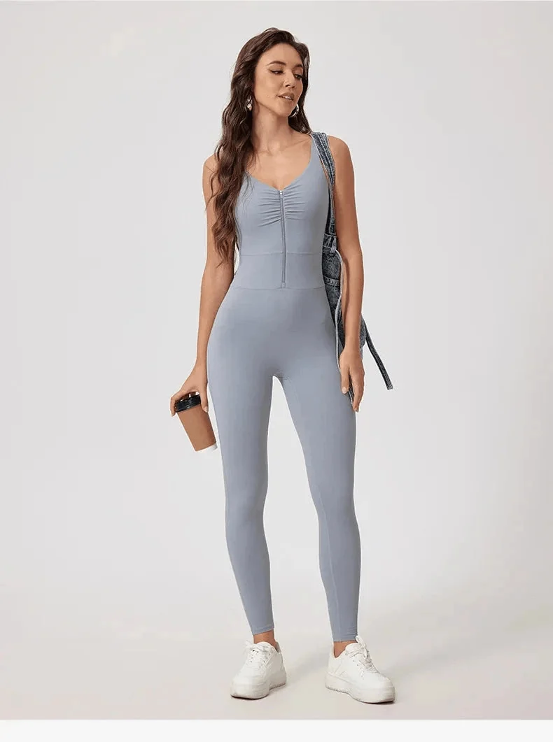 The Backless SculptN Go Jumpsuit is your perfect daily companion whether youre running, climbing, dancing, hitting the gym, or doing yoga. Made from 77% Nylon and 23% Spandex, this jumpsuit is seamlessly designed for comfort, breathability, and style. Feel empowered and stay comfortable all day with this backless beauty that complements your active lifestyle. Achieve your body goals with this must-have activewear thats also anti-wrinkle. Shop now with our secure worldwide shipping and 100% money-back guarantee to experience fitness fashion at its finest!
