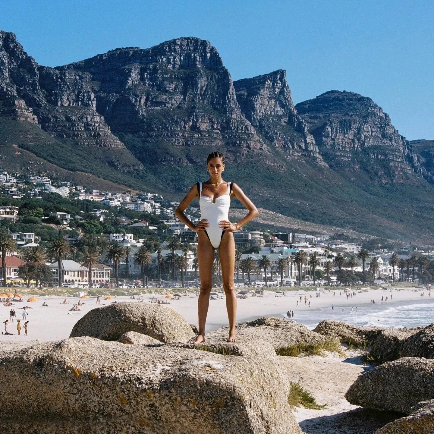 Experience timeless elegance with our balconette silhouette one-piece swimsuit inspired by90s aesthetic. Crafted from ultra-soft material with sustainable biodegradable elastane, it enhances your figure with medium back coverage. Enjoy the versatile design featuring fully adjustable straps, high-cut leg, and luxuriously wide shoulder straps to highlight your décolletage. Adorned with a signature U-wire center front, this swimsuit offers both glamour and comfort. Double lined with gathered cup detailing and frontUhardware detail. Embrace effortless glam with oversized sunglasses and gold jewelry. Complimentary exchange available for size issues.