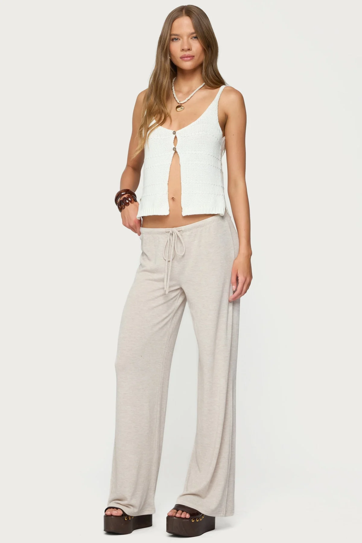 Experience unmatched comfort and style with our Beige Adjustable Tie Waist Loose Fit Pants. Crafted from a blend of polyester, rayon, and spandex, these pants feature a relaxed fit with an adjustable tie waist for a customized look and feel. Perfect for everyday wear, the model showcases the versatility of these pants in size S with a 31.5-inch inseam. Easy to care for, machine wash at a maximum of 30ºC, avoid bleach and tumble dry, iron at a maximum of 110ºC, and skip dry cleaning for long-lasting elegance and comfort.