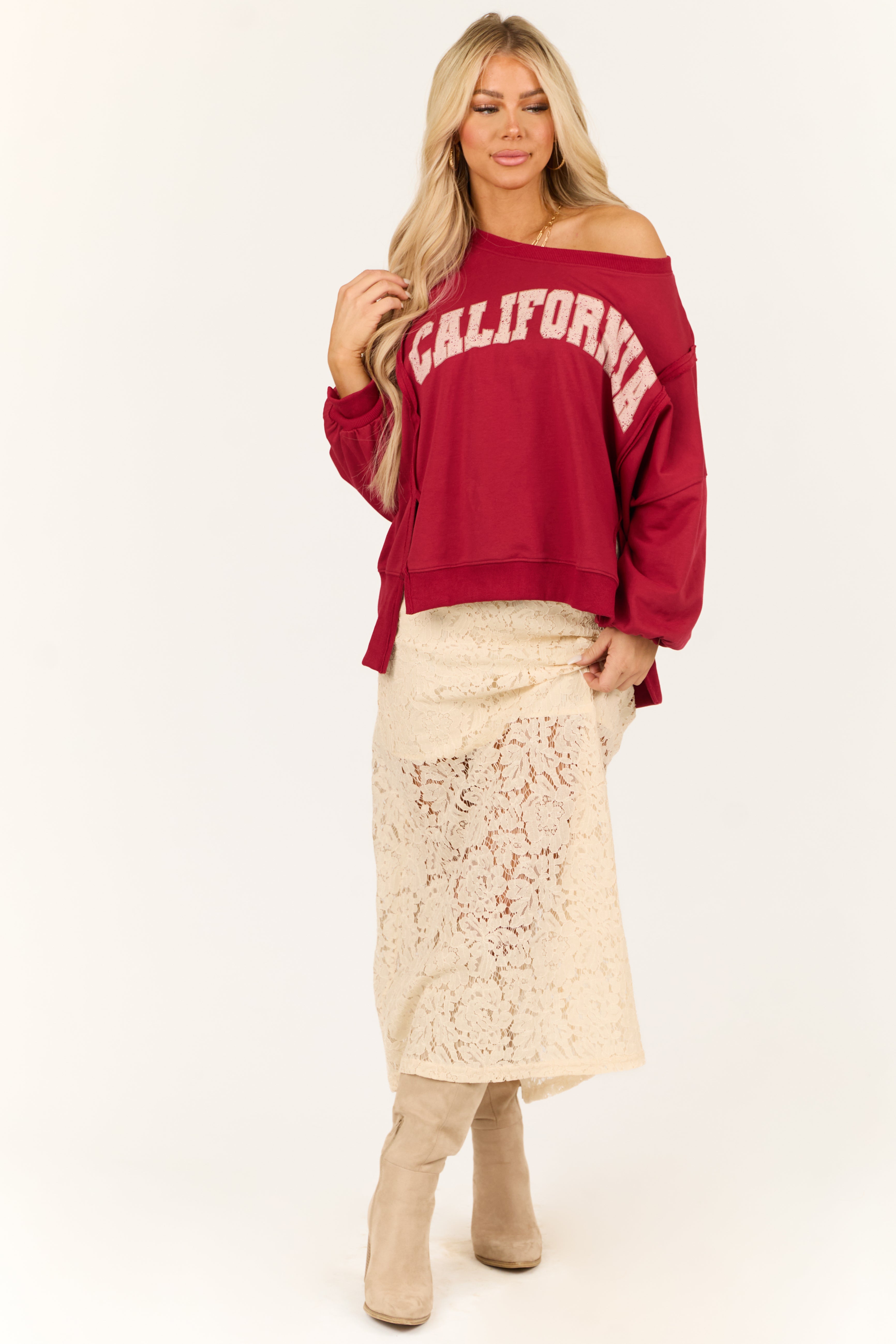 Stay cozy and stylish in this oversized knit sweatshirt featuring a semi-stretchy knit construction with a graphic design in shades of beige and blush. This sweatshirt boasts a crew neckline, long sleeves, drop shoulder, ribbed trim, side slits on the hem, and is made of 85% Cotton and 15% Polyester. The contrast is 95% Cotton and 5% Spandex. Perfect for any casual day out or lounging at home. Hand wash only. Model is wearing a size Small.