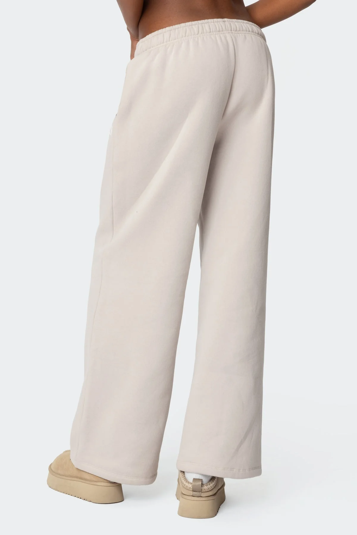Indulge in unparalleled comfort and style with our beige graphic text lounge sweatpants set. Crafted from a blend of polyester and cotton, these sweatpants feature a straight leg fit for a modern silhouette. Whether youre lounging at home or running errands, these versatile sweatpants ensure a perfect blend of fashion and functionality. The model is wearing size S with an inseam of 29.5 inches. To maintain the quality, machine wash at a maximum of 30ºC with similar colors, avoid bleach and tumble dry, iron at a maximum of 110ºC, and skip dry cleaning for longevity.
