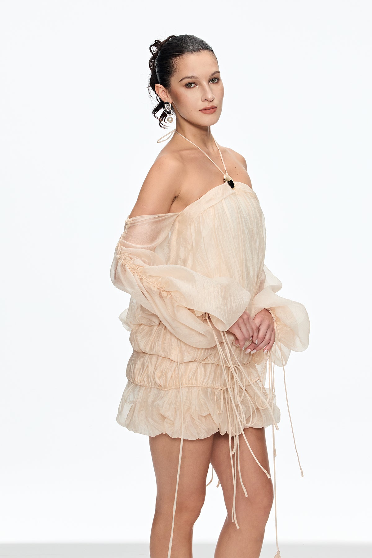 Indulge in the romantic allure of the Beige Lace-Up Off-Shoulder Mini Dress . Crafted for elegance and comfort, this chic essential features delicate ruching, off-shoulder neckline, and an adjustable lace-up front for a perfect fit. Whether for casual outings or special occasions, this non-stretch dress offers a sophisticated yet playful look. Elevate your style effortlessly with this versatile wardrobe addition that embodies the essence of a romantic coquette. Stretch Factor: Non-Stretch. Care: Gentle machine wash. Note: Color may vary due to lighting.