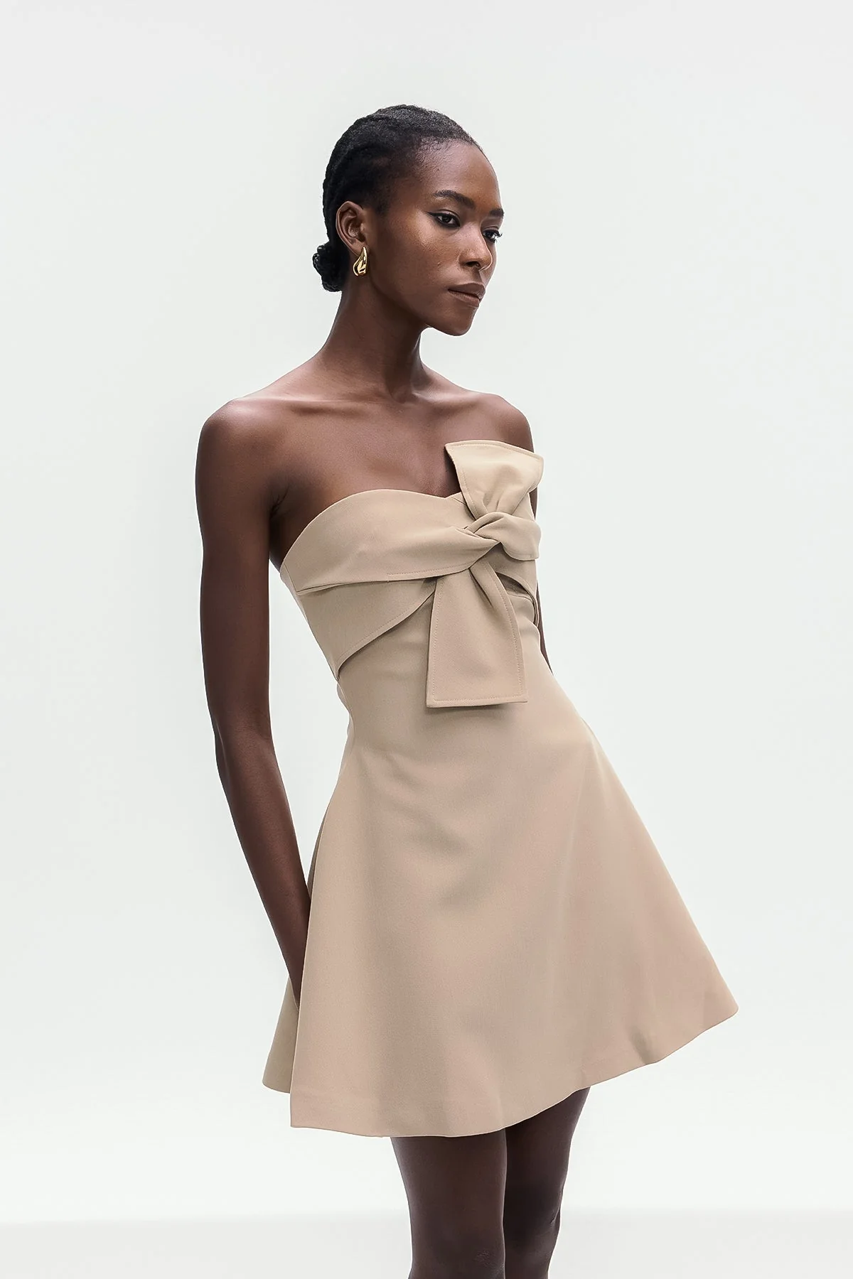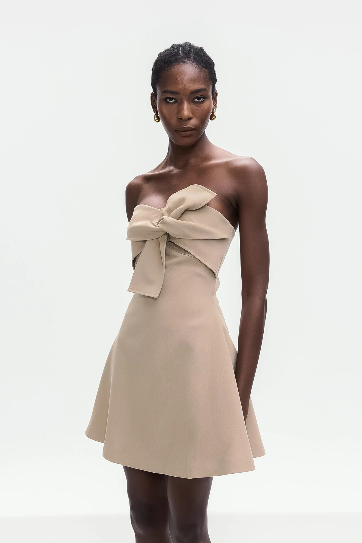 The Beige Lace-Up Strapless Mini Dress offers an elegant design and flattering silhouette perfect for evening events. This chic essential features a secure lace-up closure, strapless neckline, and sleek cut to accentuate your figure with sophistication. Ideal for special occasions, this non-stretch dress is crafted for comfort and style, ensuring you stand out confidently. Gentle machine wash. Color may vary.