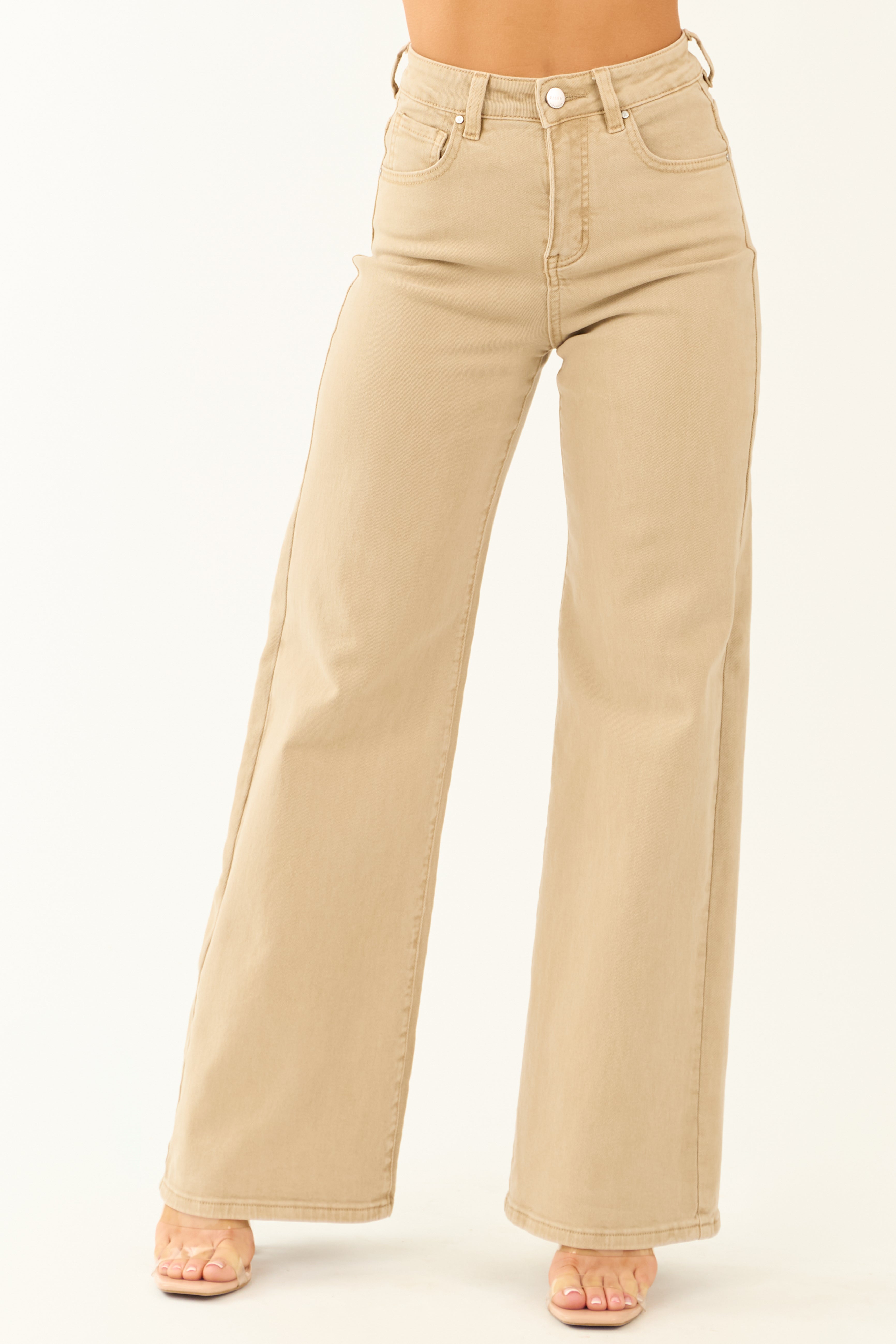 Achieve an elongated leg look with our Beige Tall Length High Rise Stretchy Wide Leg Jeans! Tailored beautifully to deliver flattery, these jeans come with a semi-stretchy denim blend, a high-rise cut, and five functional pockets for your essentials. The zipper fly and button closure offer convenience, while the loose waistband provides extra space. With a front rise of 11″ and a back rise of 13.5″, these jeans are meant to dazzle. Ideal for pairing with heels or boots. Waist sizes range from 24″ to 32″, while the inseam is 33″. Crafted from 98% Cotton and 2% Spandex. Available in sizes 0 to 15.