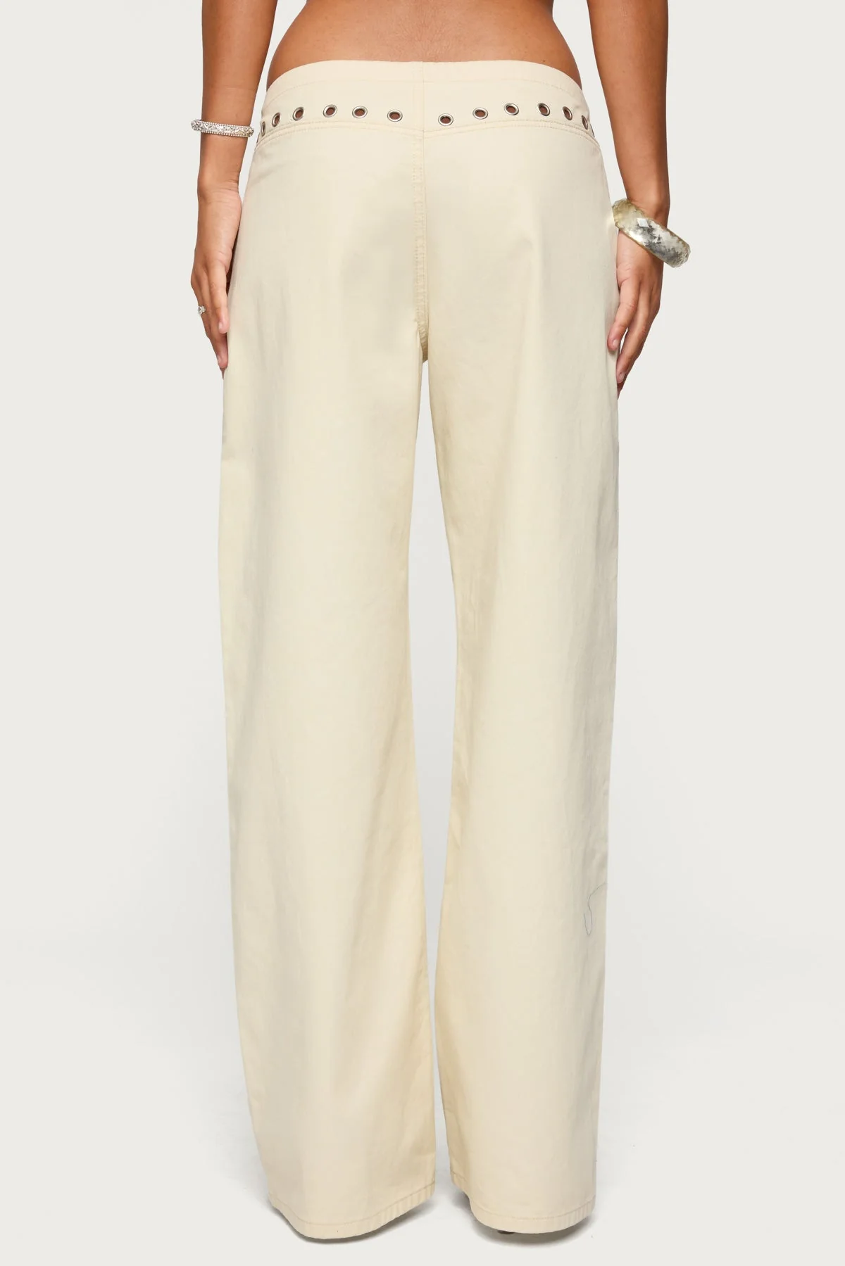 Experience style and comfort with our Beige Tie Waist Grommet Detailing Jeans. Made from 100% Cotton denim fabric, these low-rise jeans feature a trendy tie waist and chic grommet detailing. Feel confident and on-trend with these versatile jeans that can be dressed up or down. Machine washable and easy to maintain. Model wears size S with an inseam of 31.1 inches and height of 58. Get yours today!