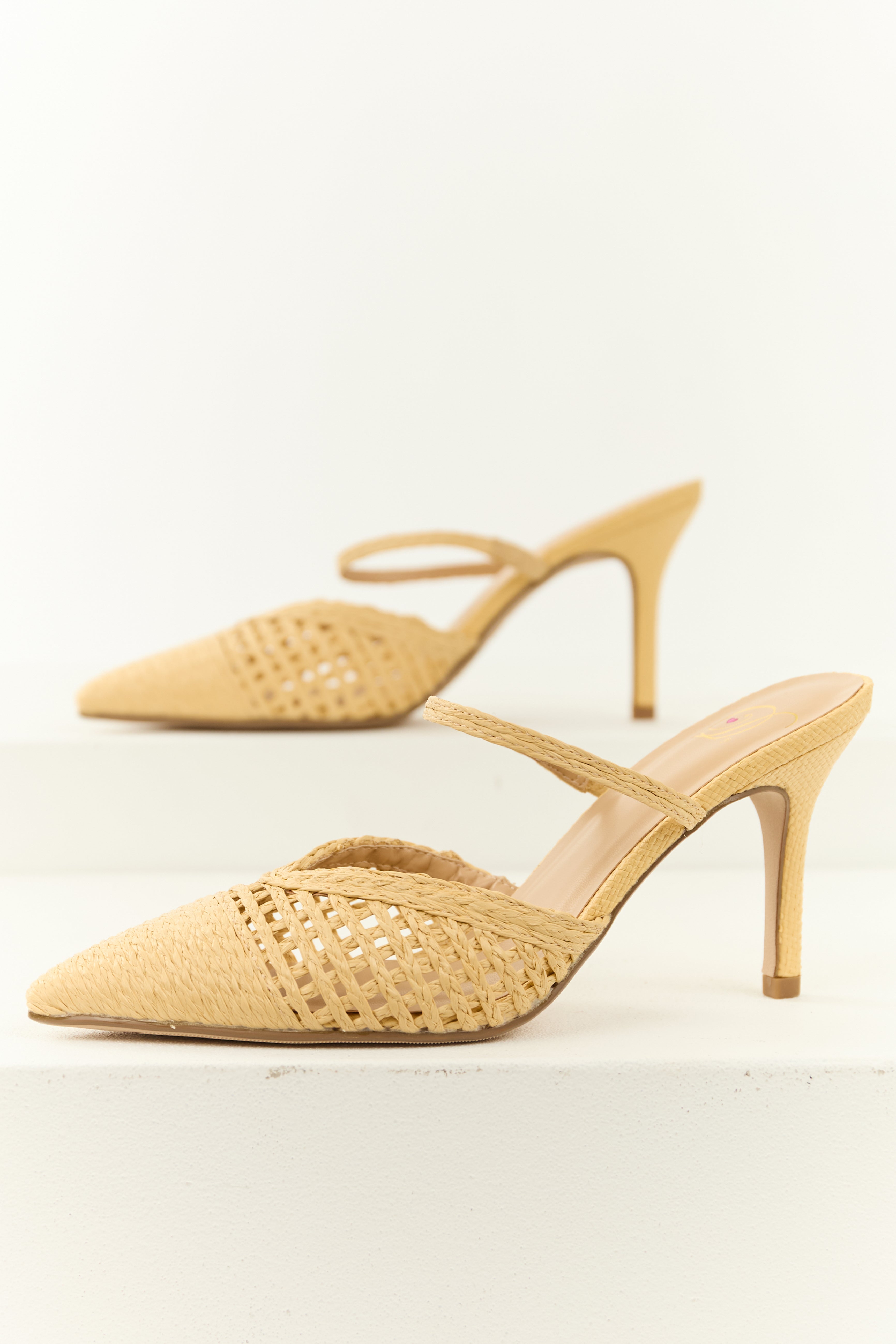 Indulge in style and comfort with these beige woven stiletto slip-on heels. Featuring a stretchy strap, a slightly cushioned insole, and a 3.75″ stiletto heel, these imported heels offer both elegance and ease. The shaft measures 3.5″ with an adjustable circumference of 10″. Elevate your outfit effortlessly with these chic heels. Crafted for the modern woman with an eye for sophistication.