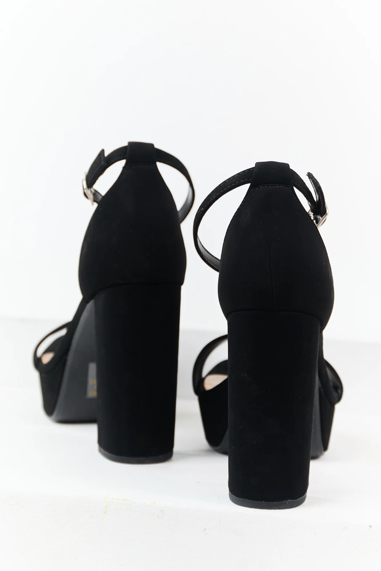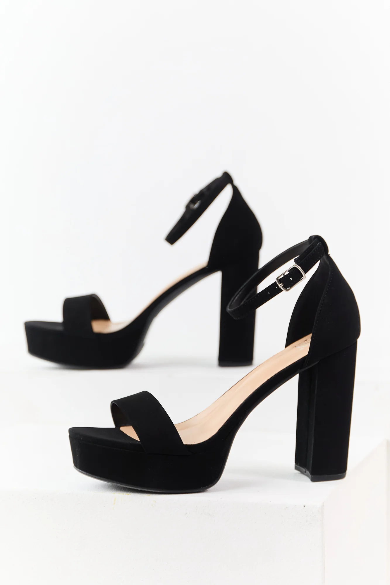Step up your fashion game with these black faux leather ankle strap platform heels. Made of non-stretchy material, featuring an adjustable ankle strap, rounded open toe, and a block heel. Stay comfortable with a slightly cushioned insole. Shaft height: 4.5 inches, Circumference: 10 inches, Heel height: 4.5 inches, Platform height: 1 inch. Imported. Available in sizes 6 to 10.