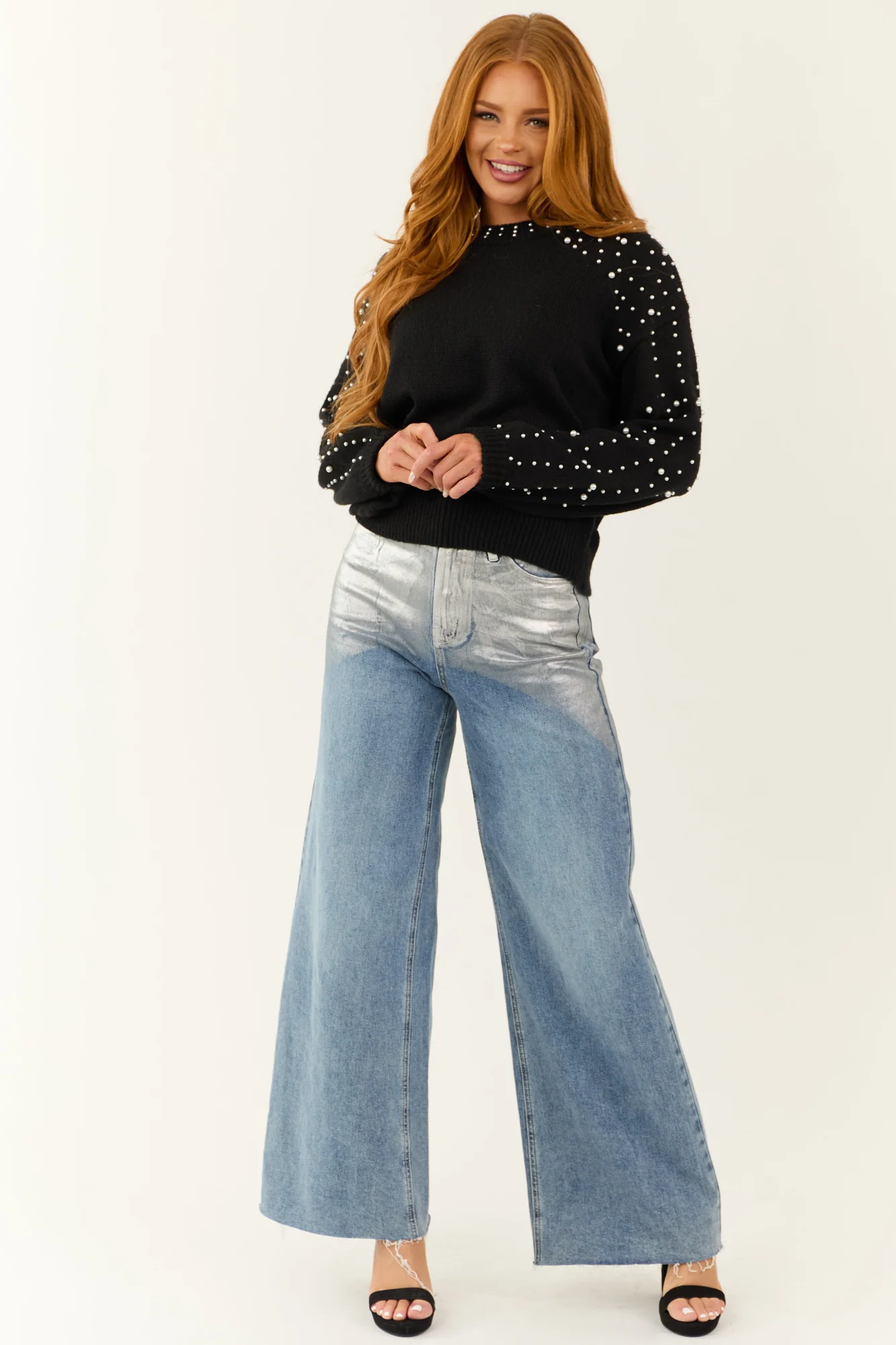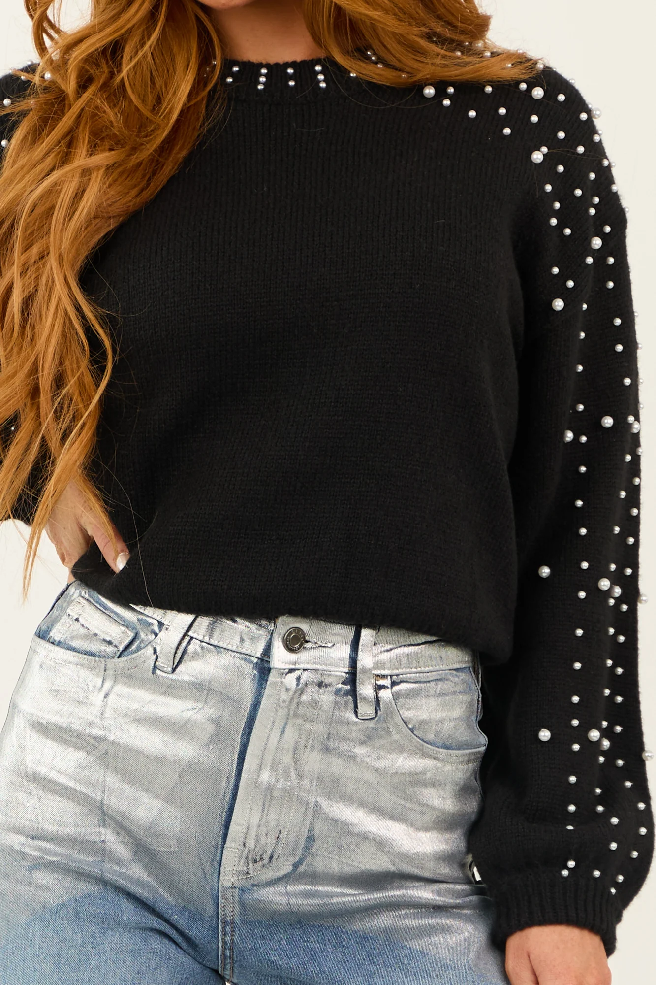 This Black Balloon Sleeve Knit Sweater features stretchy ribbed knit fabric, ribbed banded trim, a crew neckline, drop shoulders, and long sleeves for a cozy and stylish look. Made of 100% Polyester, this sweater is perfect for winter days and nights. The model is wearing a size Small. Stay warm in style with this versatile and elegant sweater.