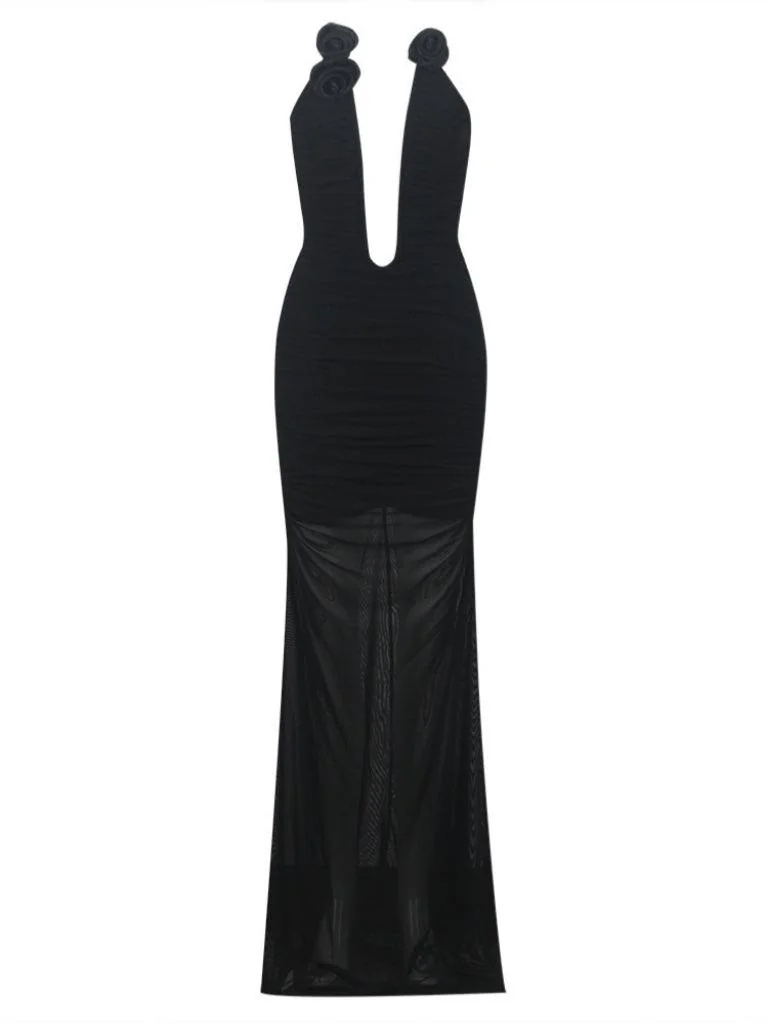 Experience timeless elegance with our black bandage maxi dress featuring a subtle flower pattern. Crafted with high-quality bandage fabric, this dress boasts a flowy silhouette, strapless design, and long length for a classic look suitable for any occasion. Made of 95% Polyester and 5% Spandex for a comfortable high-stretch fit. Hand wash cold to maintain the stunning color under different lighting conditions. Includes invisible zipper opening at the back. Model is wearing size S.
