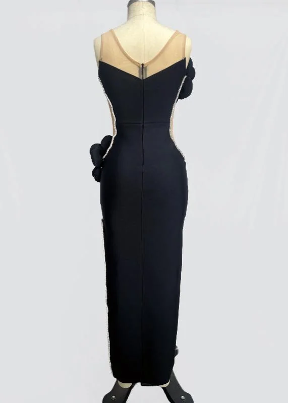 Indulge in confidence and elegance with our premium black bandage sleeveless midi dress. Carefully crafted for a flawless fit and stunning silhouette, this dress is perfect for special events. The high-stretch material (95% Polyester, 5% Spandex) ensures both comfort and style. Featuring an invisible zipper opening at the back, this dress exudes sophistication. Please note that the color may vary slightly due to lighting. Ensure the best fit by referring to our size chart. Dry clean only.