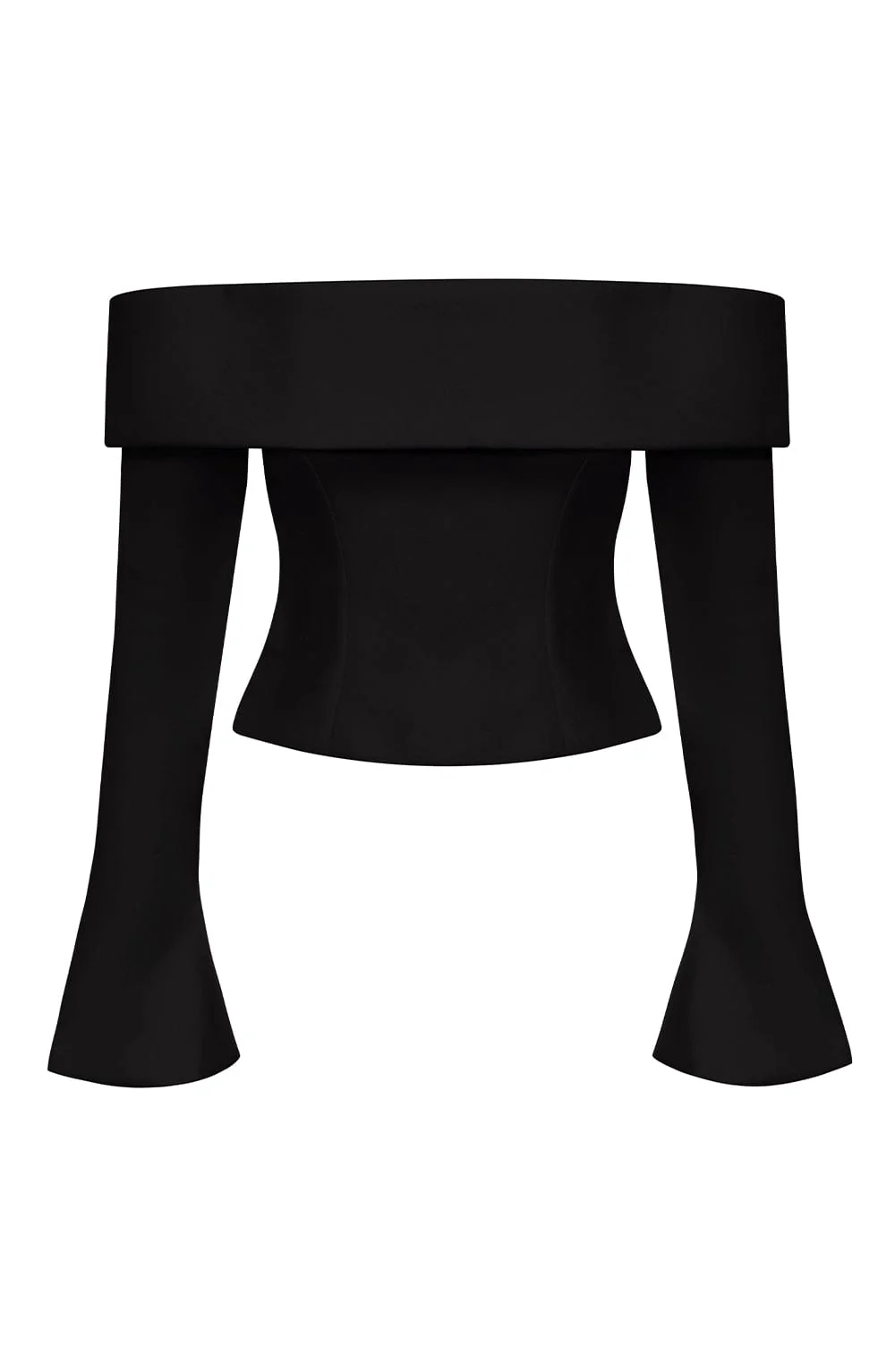 Black Bardot Neckline Geneva Top for Women – Elegant Style