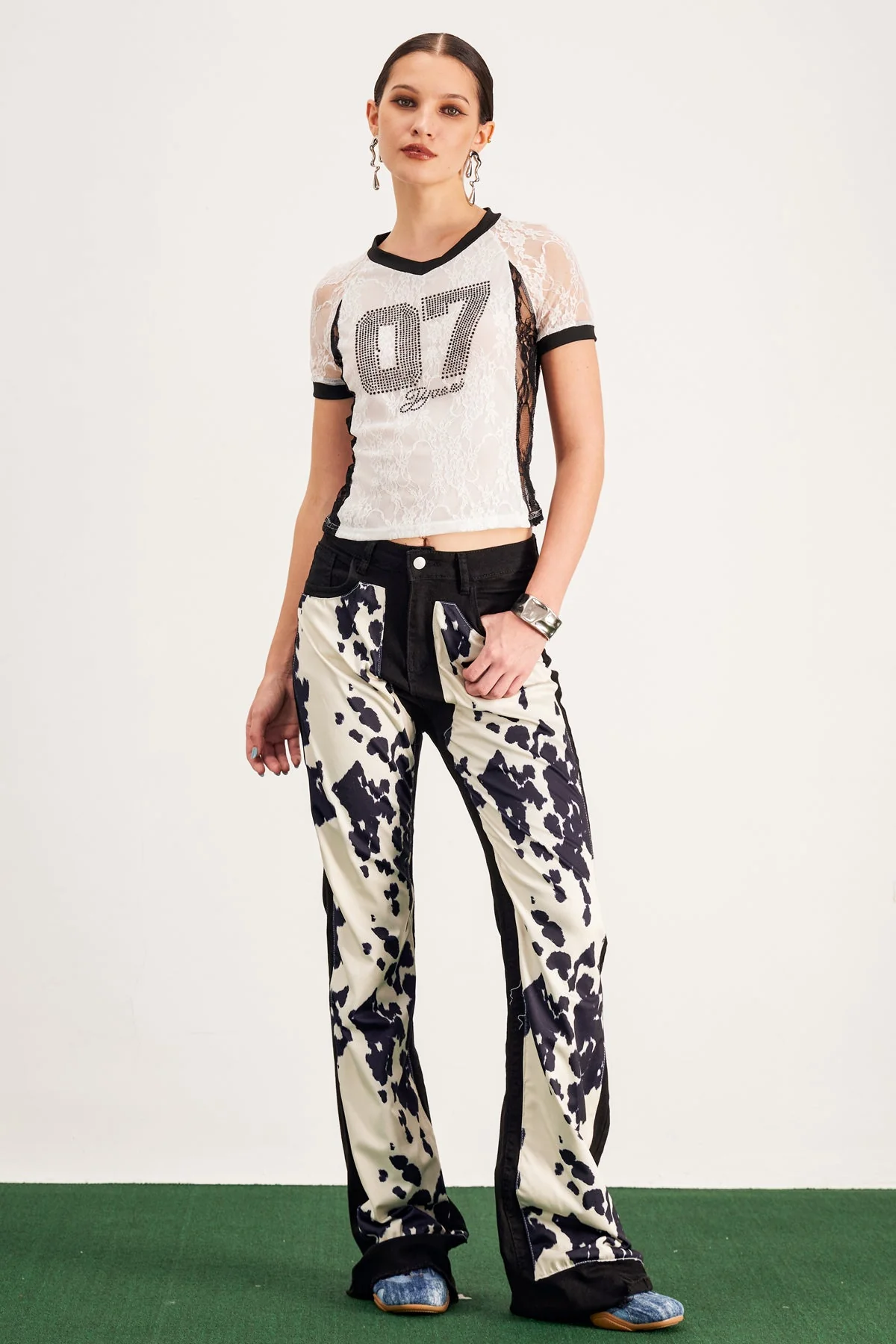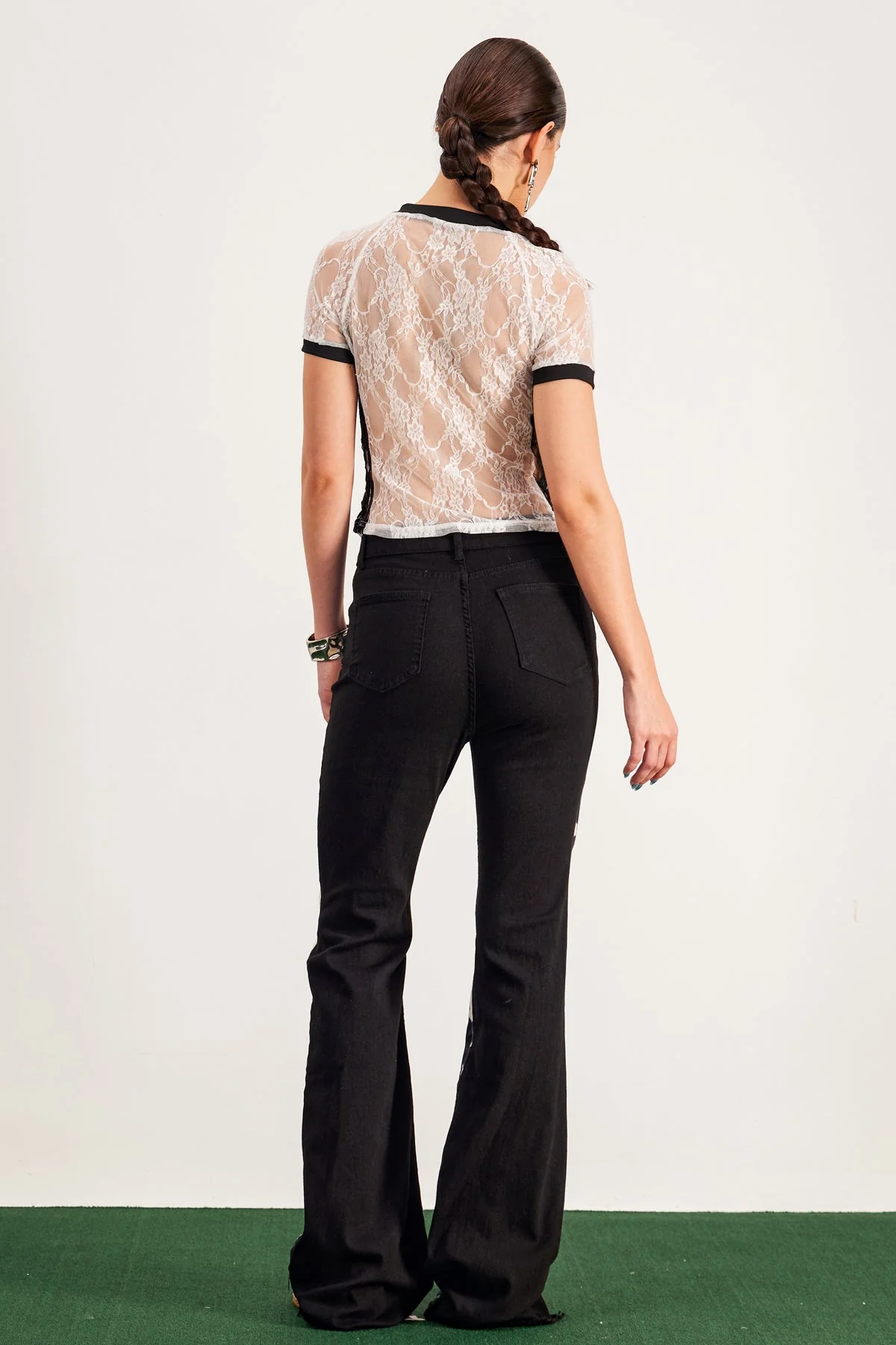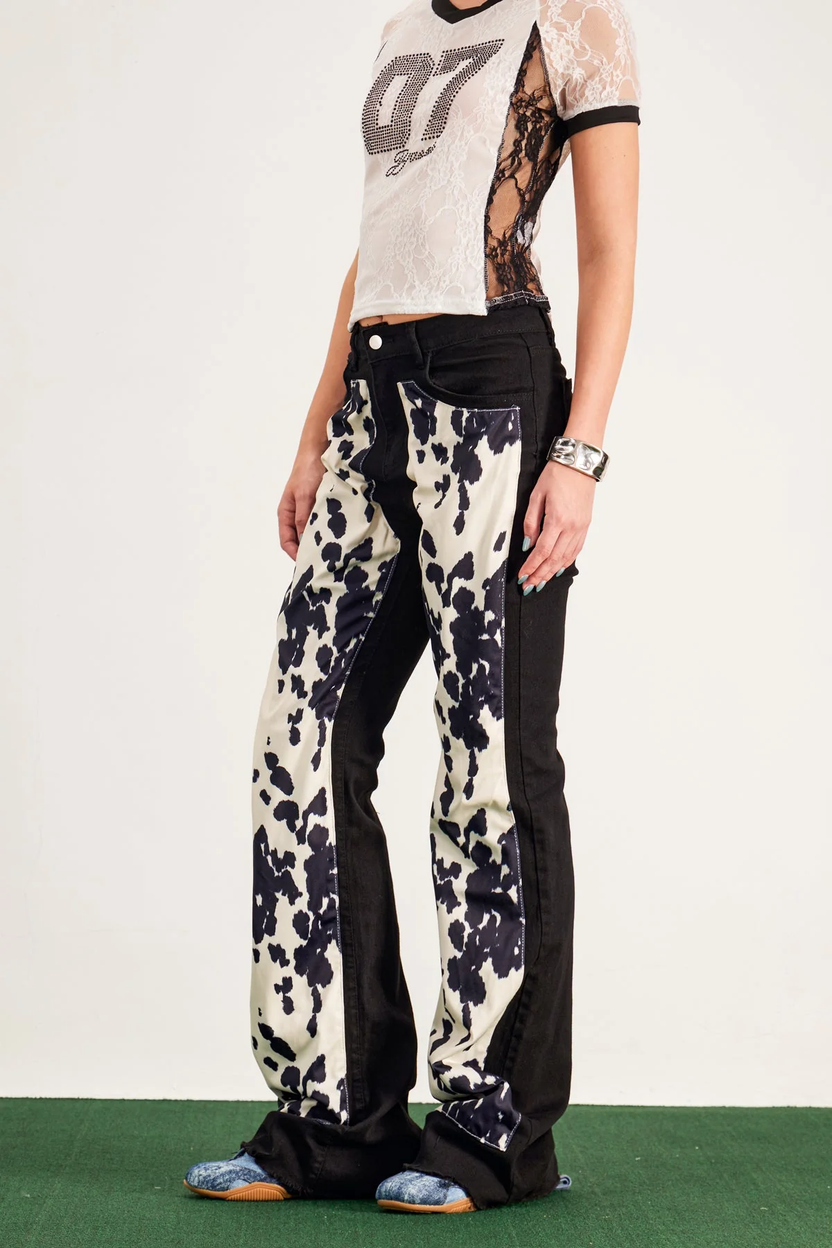 Elevate your style with our Bandi Print Bootcut Jeans in Black, a wardrobe essential for the fashion-forward. These trendy jeans feature a flattering bootcut silhouette that enhances your legs and flatters your figure. Crafted from premium denim with a blend of 50% Polyester and 50% Cotton, these jeans offer both comfort and style. The non-stretch fabric ensures these jeans maintain their shape wear after wear. Perfect for any occasion, upgrade your look with this versatile and chic piece. Color may vary slightly due to lighting effects in images.