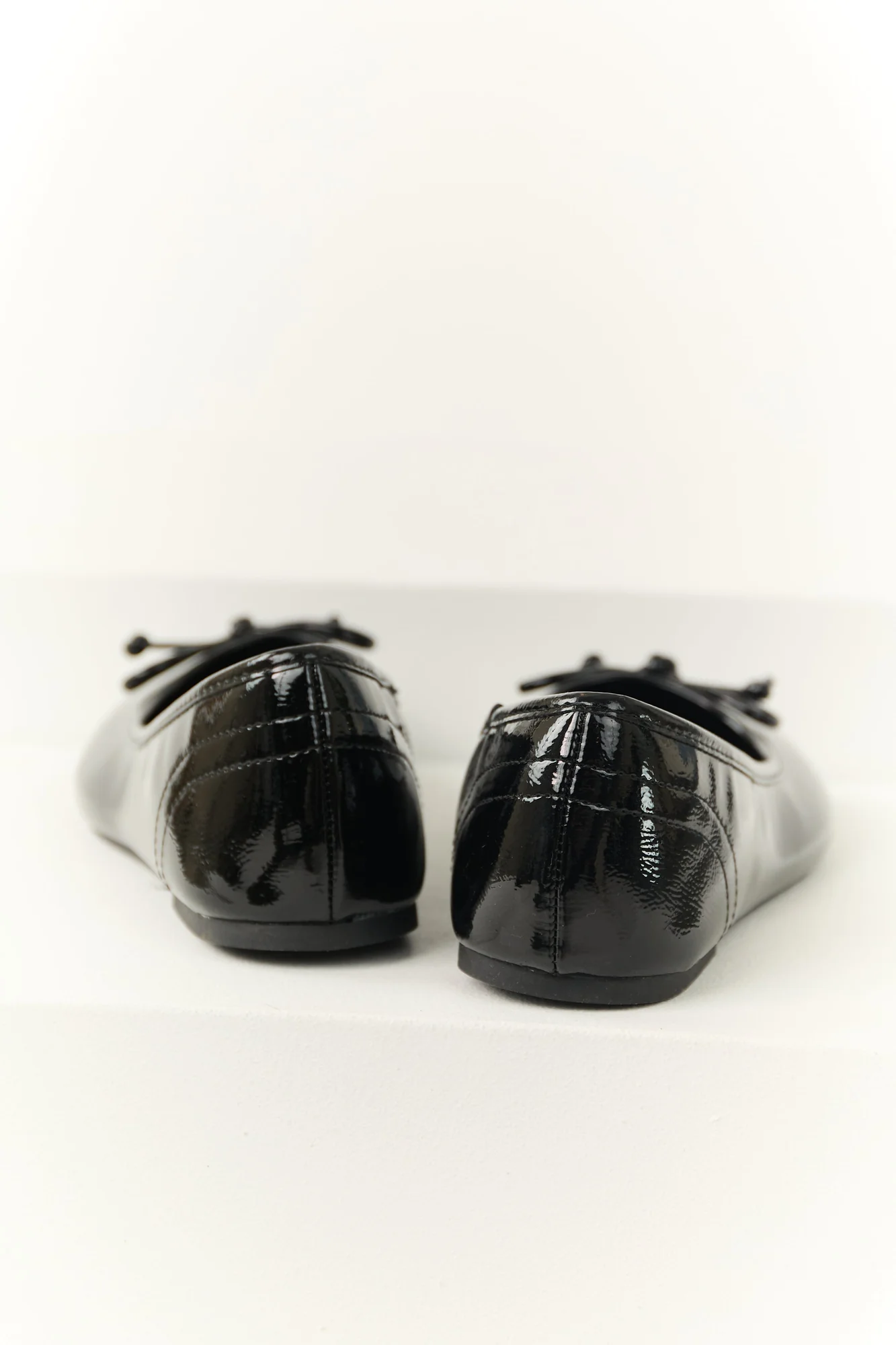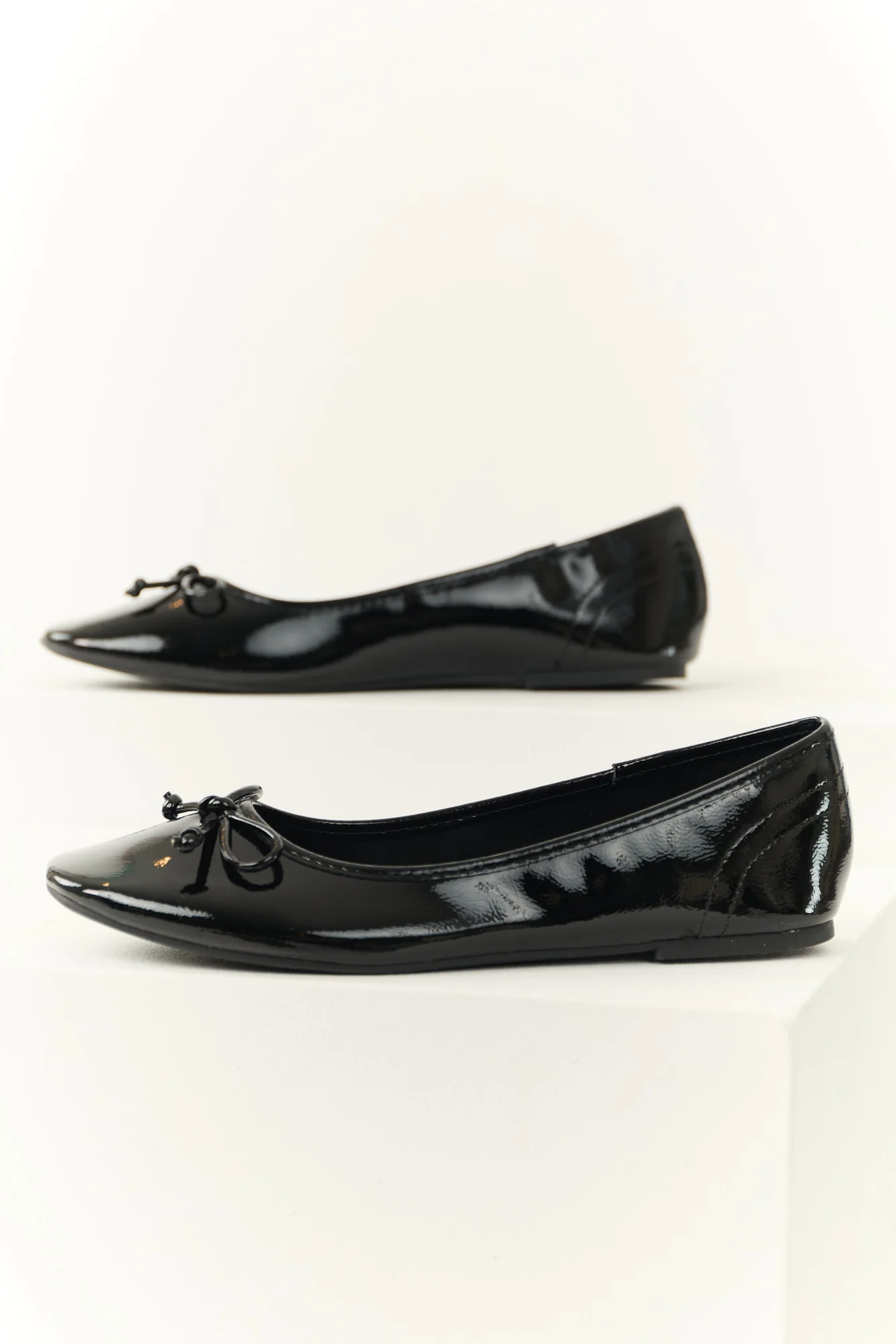 Step up your style game with these black slip-on flats featuring a chic bow detail. Crafted from patent faux leather, these non-stretchy flats offer comfort with a round toe and a slightly cushioned insole, perfect for casual daytime wear during fall. Imported. Circumference: 16 inches. Available in multiple sizes.