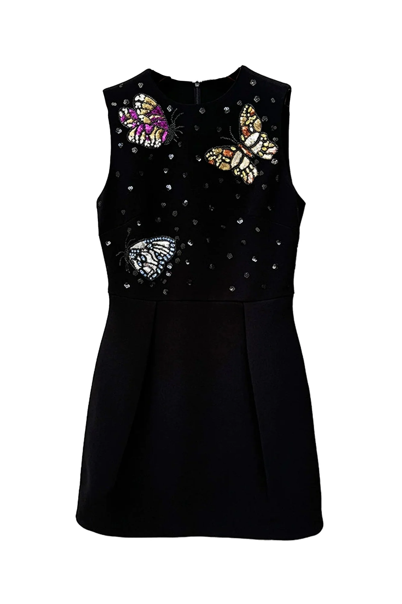 Elevate your wardrobe with sophistication wearing our Black Butterflies Mini Dress. Adorned with exquisite rhinestones, this figure-hugging dress exudes elegance and charm, perfect for special occasions and evening events. Crafted from high-quality polyester, this dress is approximately 83cm in length, ensuring a comfortable and stylish fit. Available in sizes ranging from S to XXL, ensuring a perfect fit for all body types. Please refer to our size chart for the best fit. Ideal for those seeking a blend of style and comfort, the classic black color complements any occasion. Stand out with this gorgeous piece that embodies grace and style.