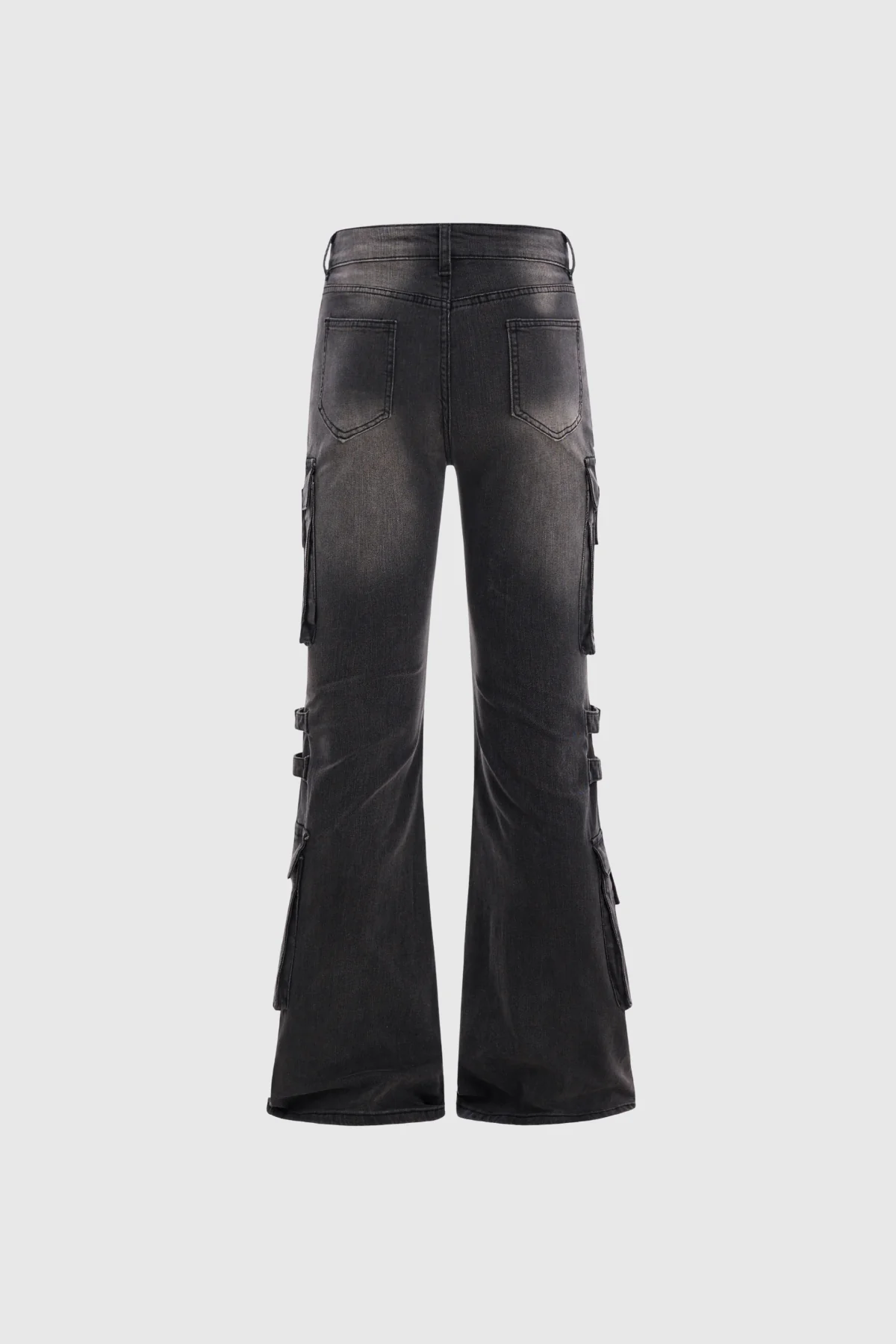 Discover the functionality and style of these Black Cargo Bootcut Jeans with Buckle Details. Crafted from durable fabric, these jeans feature cargo pockets and chic buckle accents for added utility and fashion-forward flair. The versatile bootcut leg ensures a balanced fit that pairs perfectly with any footwear, making them a valuable addition to your wardrobe. Whether you seek practicality or modern edge, these jeans offer both in one piece. These non-stretch jeans are easy to care for with a gentle machine wash. Please note that the color may vary slightly due to lighting differences. For the most accurate color representation, refer to the product images without the model.