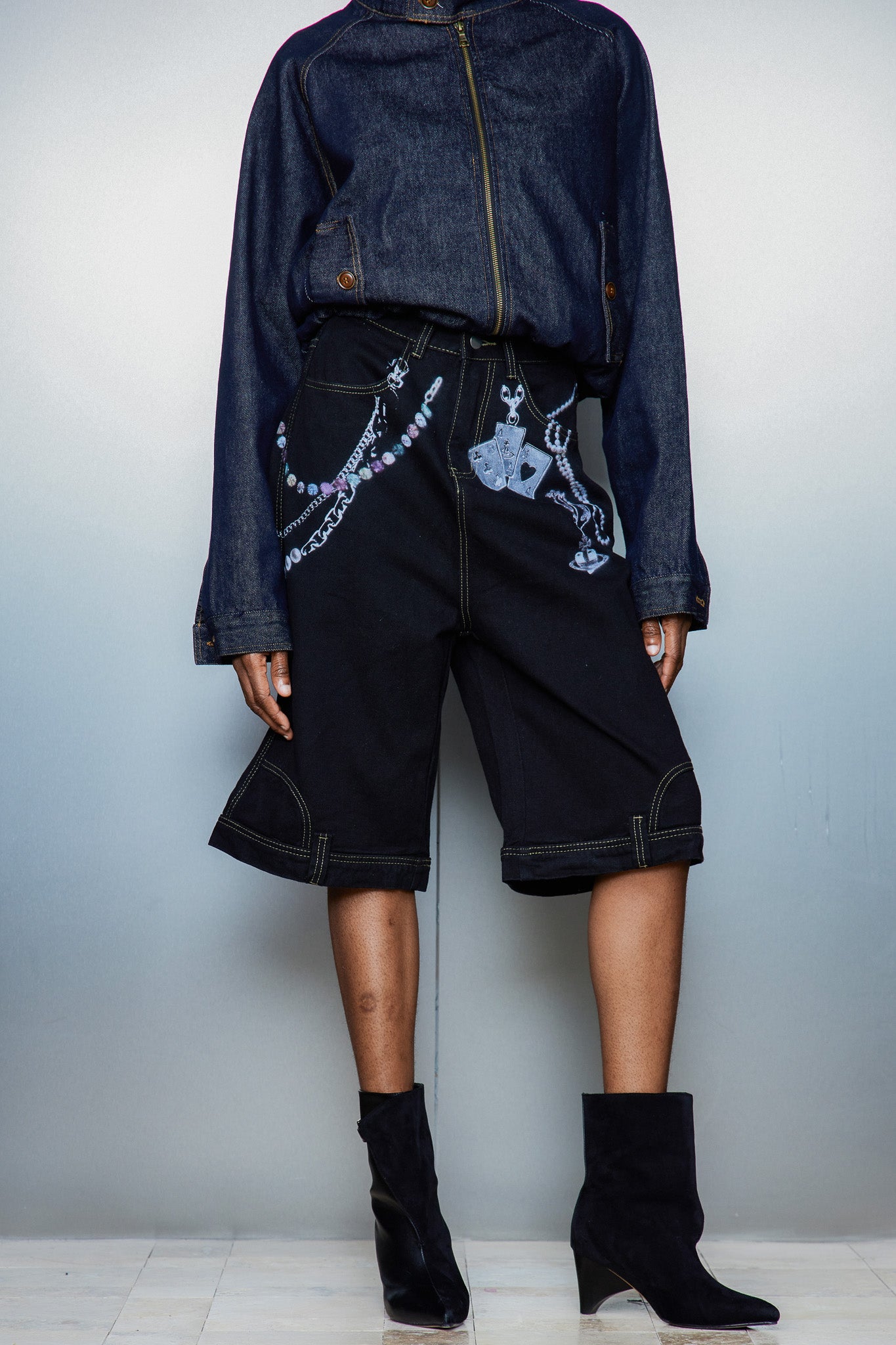 Experience the perfect blend of contemporary fashion and expert craftsmanship with our Black Chain Print Mid-Length Jeans. These jeans are tailored to a flattering midi length and showcase a striking chain pattern for a bold and modern touch on traditional denim. Combining comfort with a sleek silhouette, this statement piece is designed to elevate your everyday style effortlessly. Crafted without stretch for a non-stretch feel, these jeans are easy to care for with a gentle machine wash. Please note that the actual color may vary slightly due to lighting. Enhance your wardrobe with these stylish jeans today!