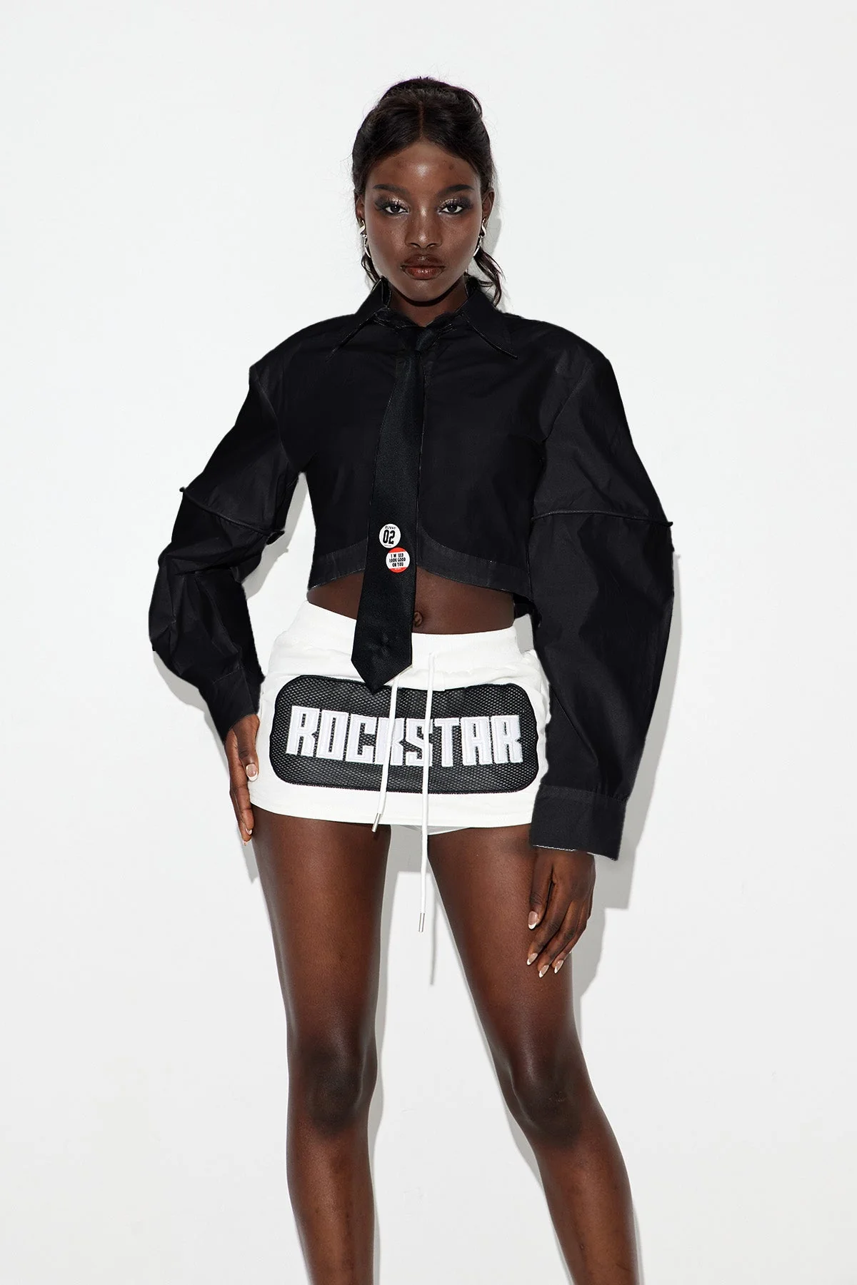 Experience modern sophistication with the Black Cropped Shirt. This versatile piece features a tailored cropped fit, crafted from premium fabric for both comfort and structure. Its ideal for layering or as a standalone statement. The minimalist design ensures it pairs seamlessly with high-waisted bottoms. Elevate your look with this urban edge piece suitable for various occasions. Non-stretch fabric. Care: Gentle machine wash. Note: Color may vary due to lighting. Discover a new way to style!