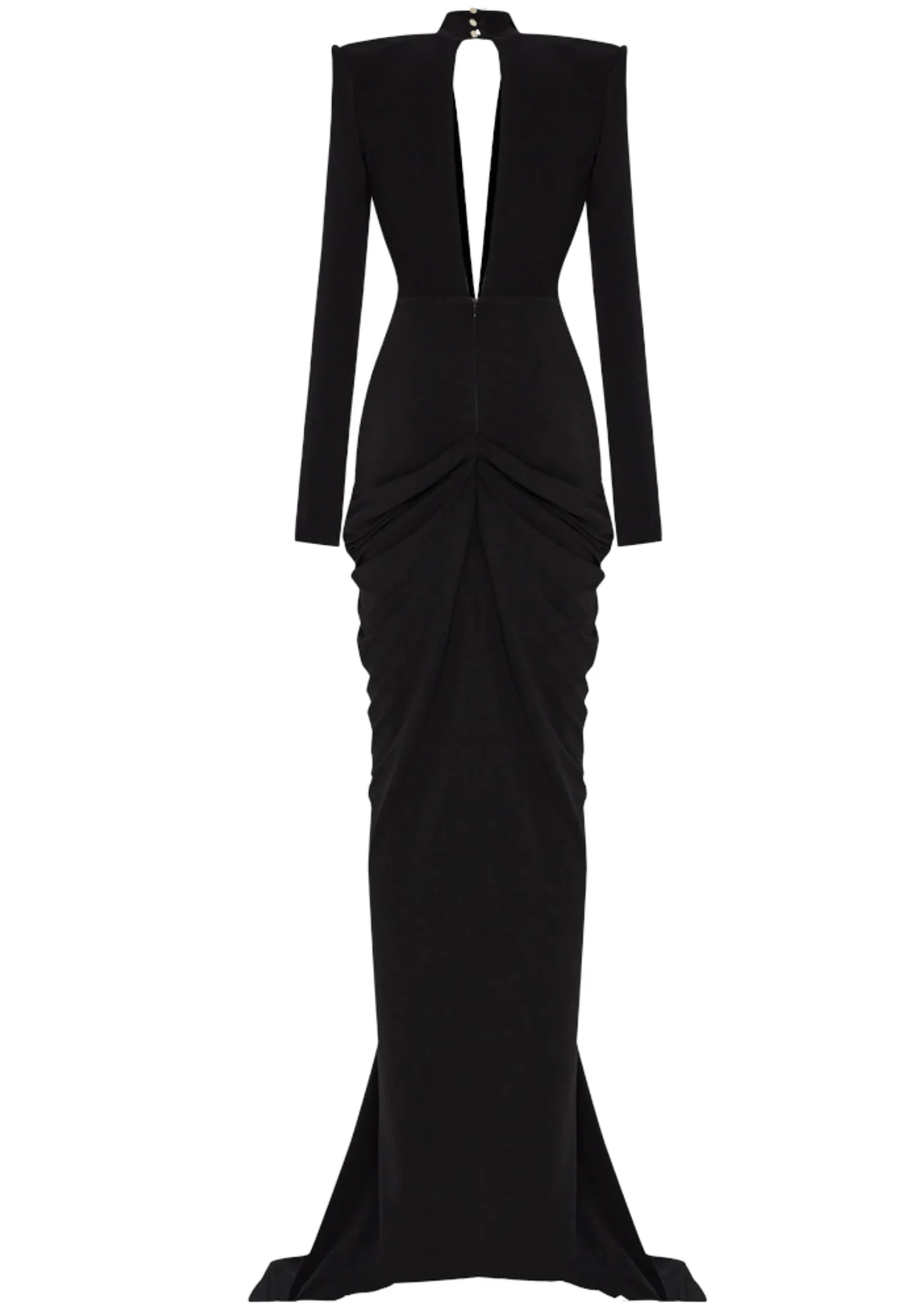 Indulge in elegance with our Black Crystal Embellished V Neck Maxi Dress. This stunning dress features a plunging neckline, long sleeves, and a draped design adorned with dazzling rhinestones. Crafted from a blend of Polyester, Cotton, and Spandex for durability and comfort. The YKK zipper ensures a secure fit. For best care, gentle dry clean only. Elevate your wardrobe with this glamorous attire that exudes sophistication and style.