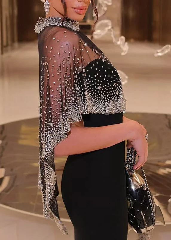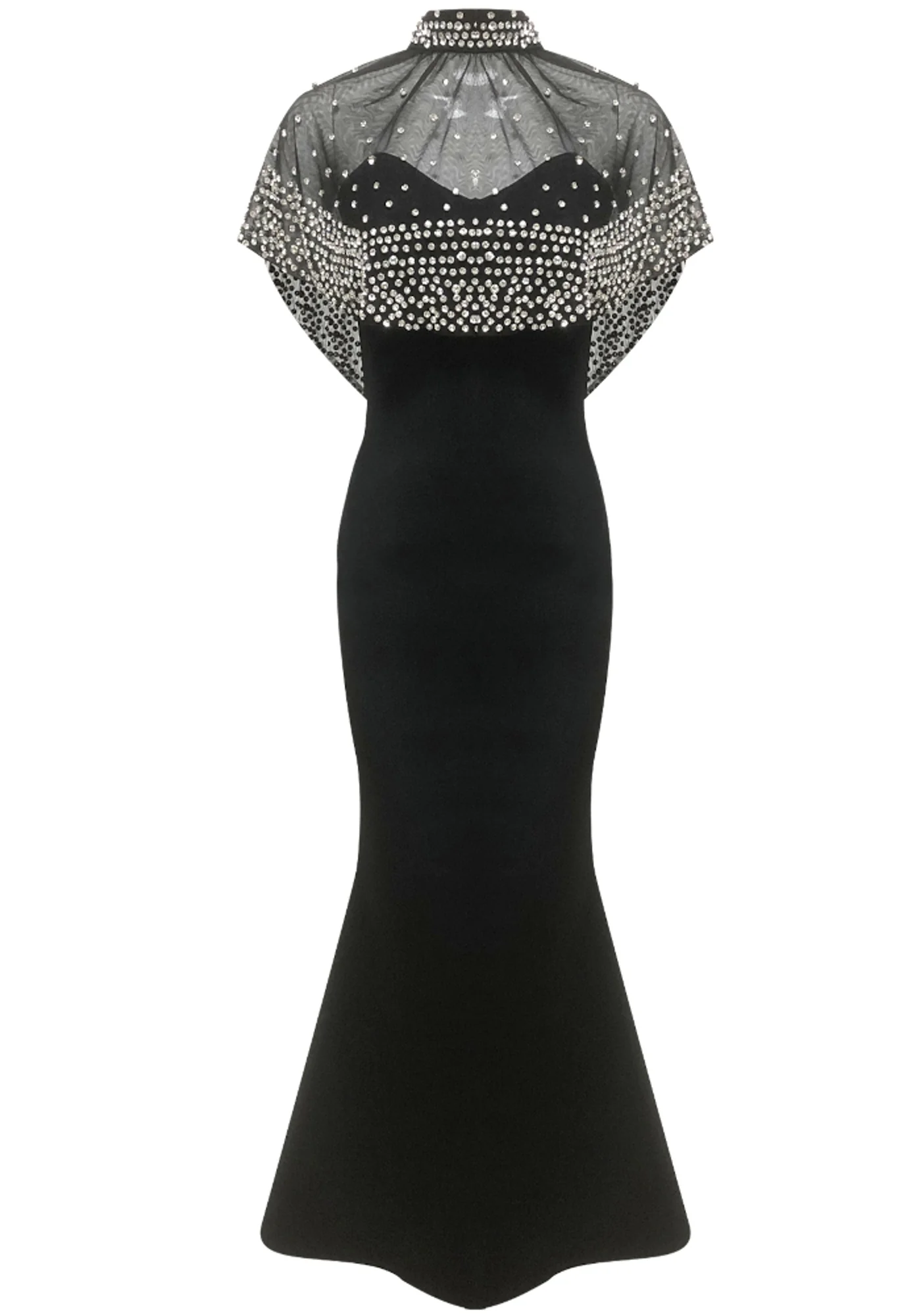 Tags: black dress, crystal embellished dress, Evening gown, maxi dress, mesh overlay dress