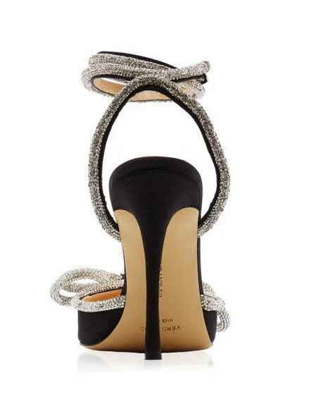 Upgrade your look with these Black Crystal Satin Heels featuring a crystal-encrusted silver rope, ankle strap, and pointed vamp. Made from lustrous satin, these heels are perfect for elevating any outfit. Each pair is made to order and ships within 7-15 business days.