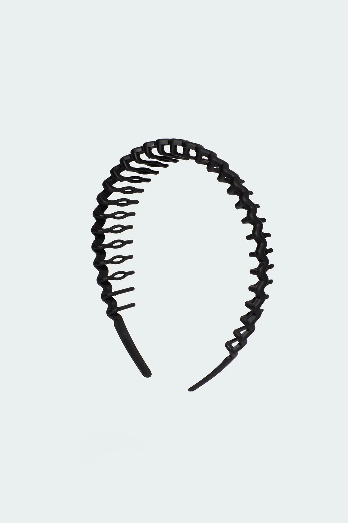 Stay trendy with our Black Curly Headband featuring a Y2K design. Made of polyethylene, this headband is a fashion staple. Measurements: Length 5.9 inches. Take care to avoid direct contact with perfume, soap, or creams for long-lasting wear. Elevate your style effortlessly with this versatile accessory that complements any outfit.