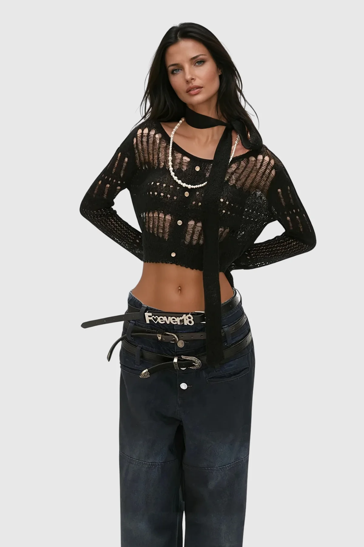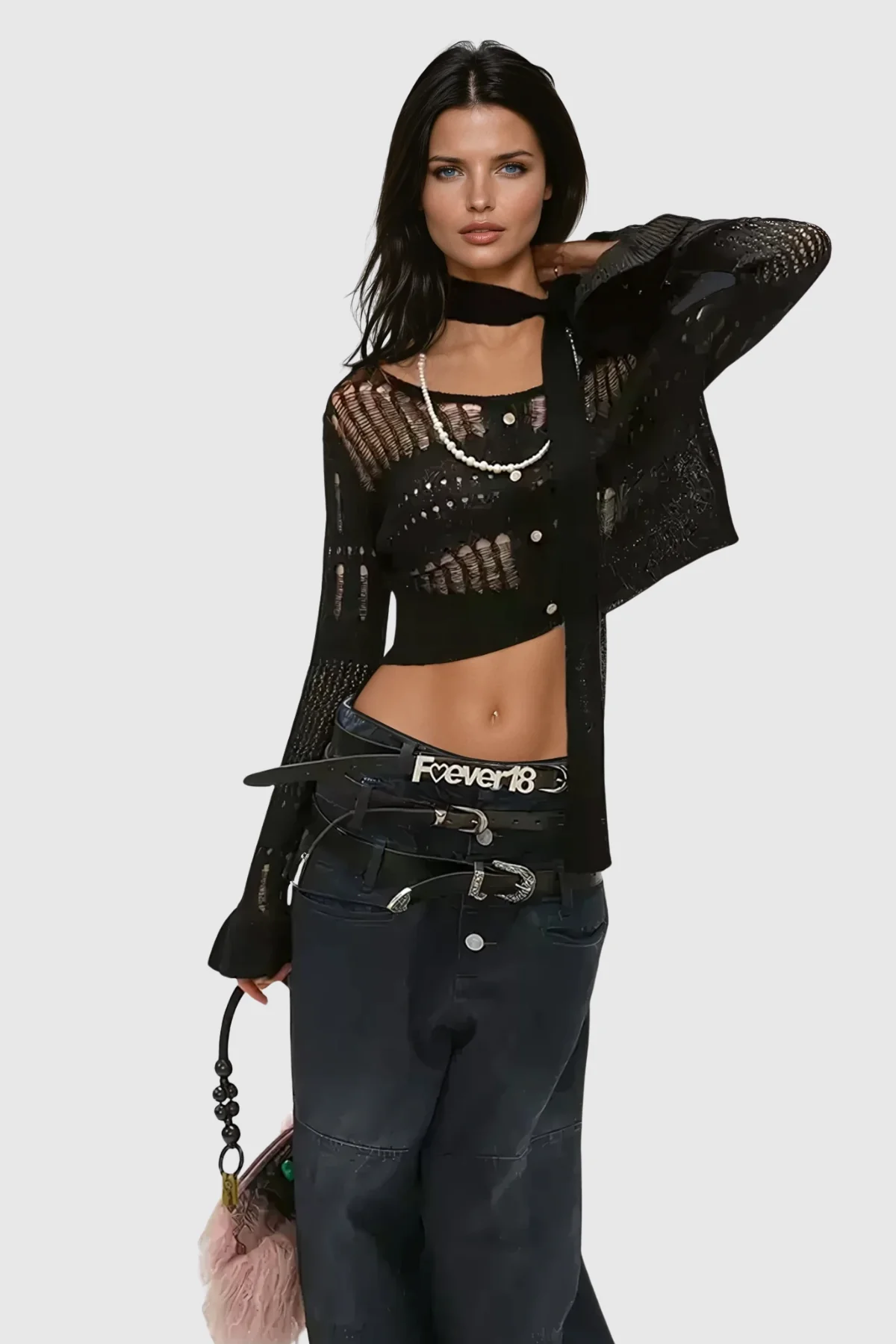 The Black Cutout Top with Refined Detailing seamlessly blends contemporary style with sophisticated design. Strategically placed cutouts offer an edgy yet elegant touch, making it a standout statement piece. Crafted for a flattering fit and versatility, this top guarantees comfort and modern flair for any occasion. Enjoy slight stretch and easy care with a gentle machine wash. Please note, color may vary in images due to lighting. Opt for this urban edge piece to elevate your wardrobe. The product images (excluding models) portray the true color accurately.