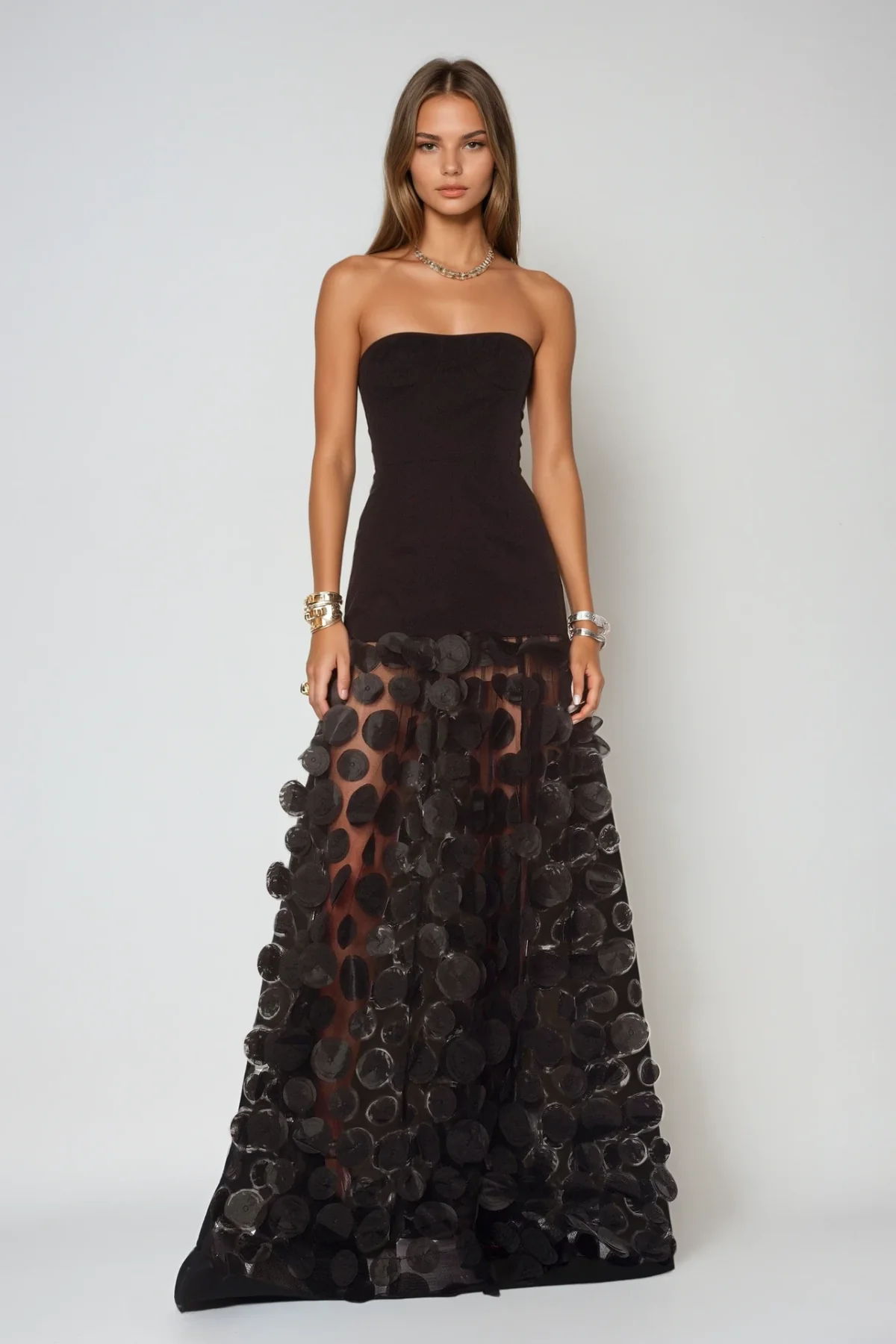 Indulge in timeless elegance with a touch of modern sophistication in the Black Dot Strapless Maxi Dress. Its delicate dot pattern and flattering silhouette enhance your natural shape. Ideal for formal events or evening occasions with its flowing fabric ensuring comfort and graceful movement. Versatile black hue for effortless pairing with various accessories. Get ready to stand out at any upscale event. Non-Stretch fabric. Gentle machine wash recommended. Color may vary slightly due to lighting. Elevate your style with this chic, essential piece. Size available: M, L, S.