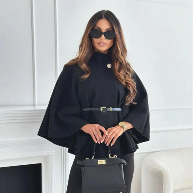 Indulge in luxury with our limited edition Black Elegant Cape Jacket for Women. Crafted from a premium blend of Cotton & Polyester, this showstopper offers exceptional quality and style. Step out confidently in this dressy outfit that is designed to turn heads. Our size chart ensures a perfect fit, guaranteeing your satisfaction. Embrace elegance with this sophisticated Black Elegant Cape Jacket today!