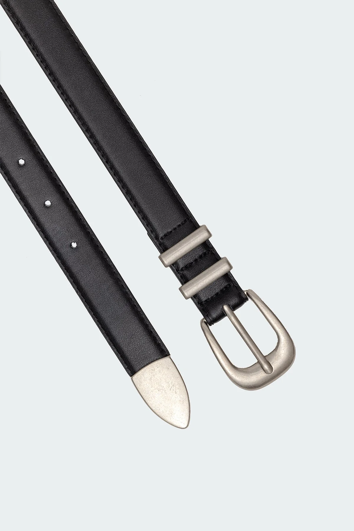 Upgrade your accessory collection with our black faux leather buckle belt. Made with high-quality polyurethane and rayon fabric, this belt features a silver-tone buckle and belt tip. The length of the belt is 40.4 inches, offering versatility for all sizes. Hand wash for easy care and maintenance.