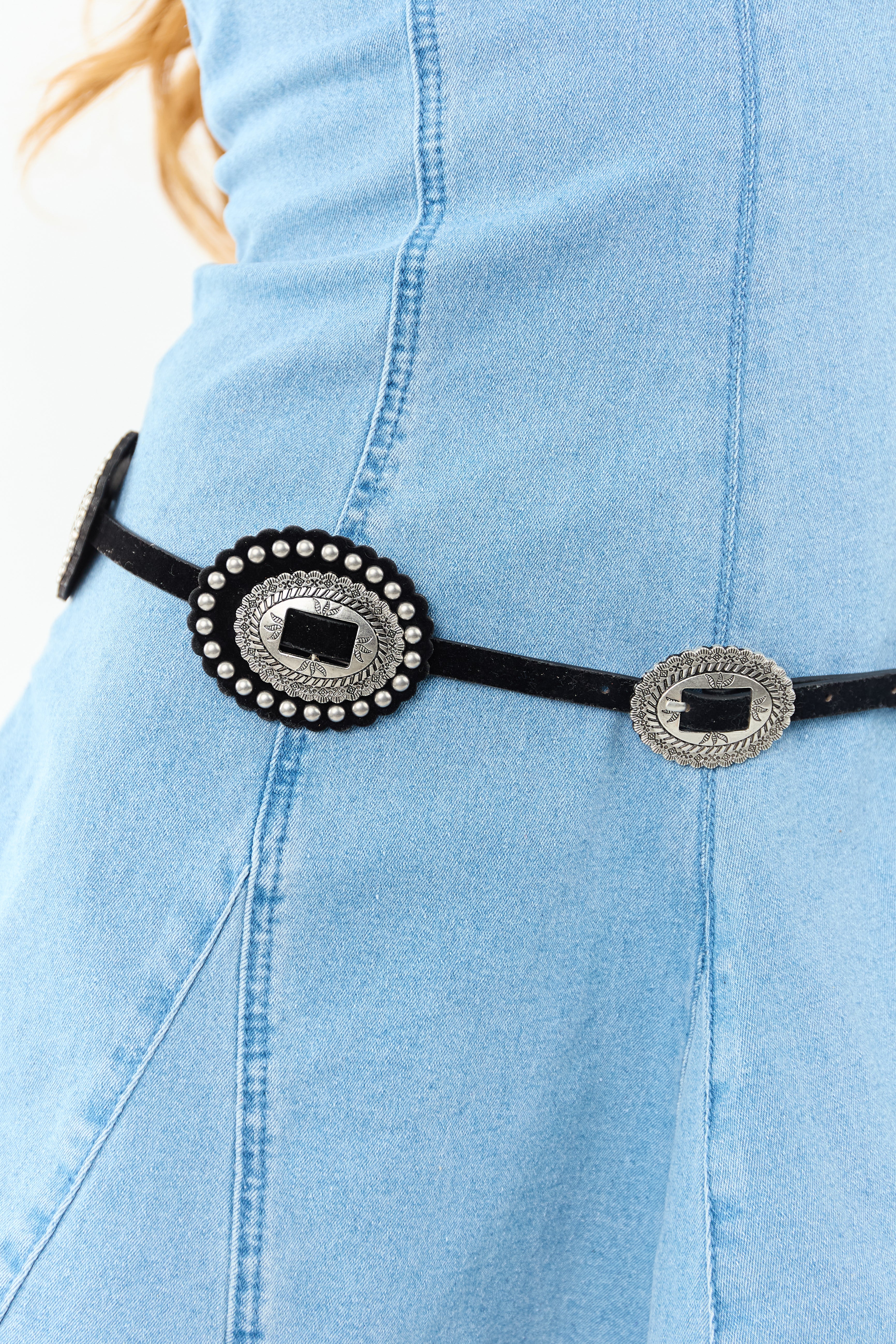 Upgrade your accessory collection with this black faux leather concho disc belt. Featuring silver metallic discs and an adjustable circumference, this stylish belt adds a touch of elegance to any outfit. Crafted from high-quality materials: flannelette, alloy metal, and polyurethane. Imported for premium quality and durability.