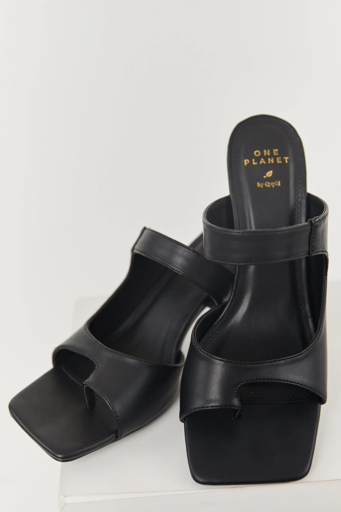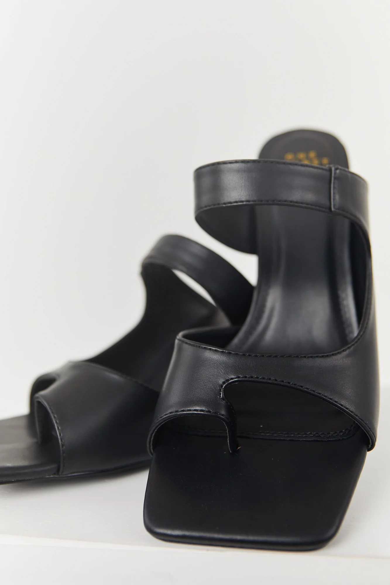 Step into elegance with our Black Faux Leather Square Toe Double Strap Heels. Crafted with faux leather, a cushioned insole, and a stylish spool heel, these shoes feature a chic double strap design with a toe ring for added flair. The slip-on style and square toe offer both comfort and sophistication. Heel height: 3.5 inches. Shaft height: 4.5 inches. Circumference: 10 inches. Available in multiple sizes from 5.5 to 10. Elevate your style with these versatile and trendy heels perfect for any occasion.