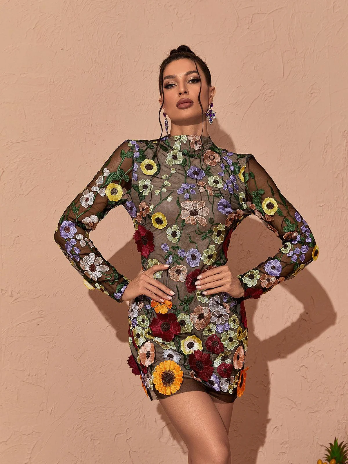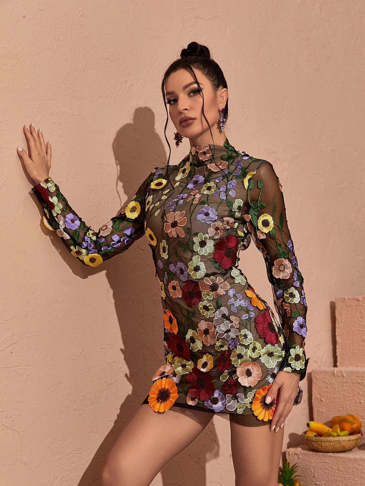 Elevate your style with our stunning Black Floral Mesh Long Sleeve Mini Dress. This chic dress showcases a striking floral mesh design and long sleeves, adding a touch of edginess to your wardrobe. Made from 100% Polyester for a comfortable fit all day long. Please note that color may vary slightly due to lighting. For the most accurate color portrayal, refer to product images without the model. Sizes run small, so if youre between sizes, we recommend sizing up for the perfect fit.