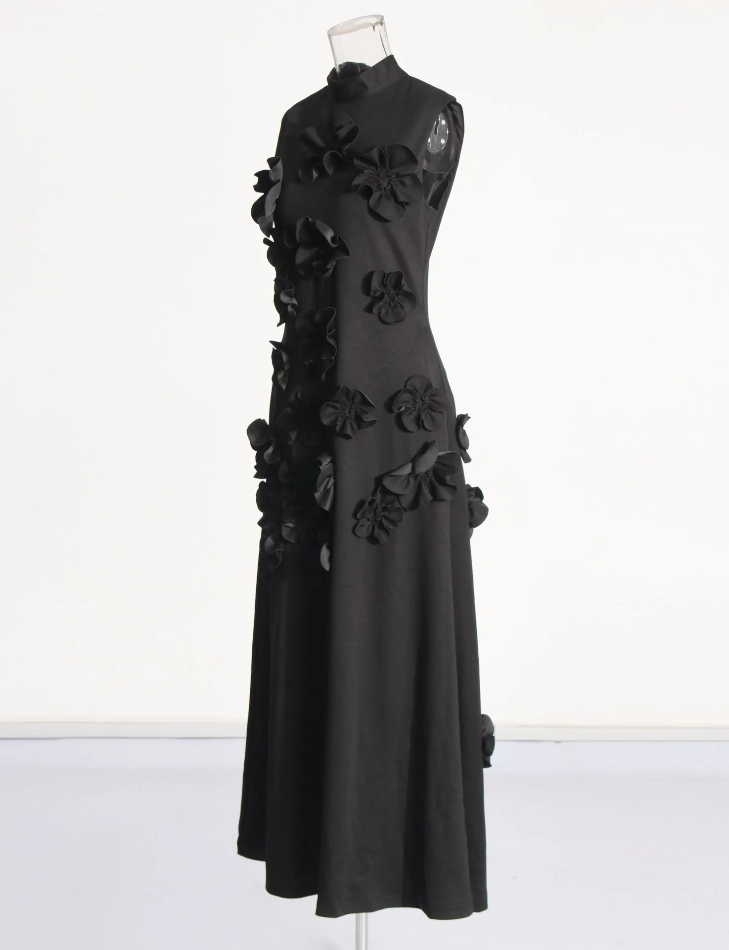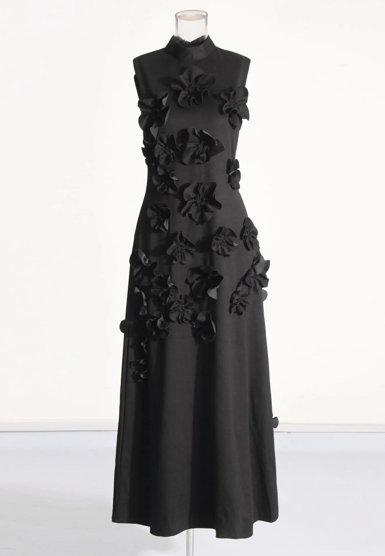Elevate your style with our stunning Black Flower Embellished Maxi Dress. Adorned with intricate floral details, this flowing maxi dress is perfect for all occasions. Radiate charm and exuberance at any event with this unique and playful piece. Expertly crafted for a perfect fit based on our size chart. Please refer to our sizing guide for optimal results. Enhance your wardrobe with this head-turning ensemble today!